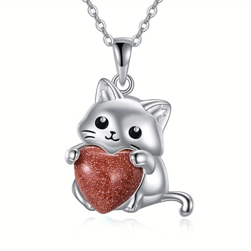 • Sterling silver cat pendant with rose quartz birthstone