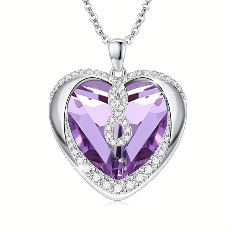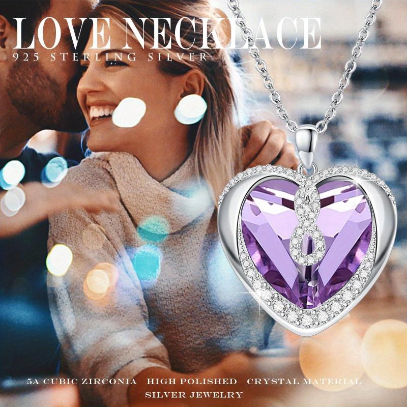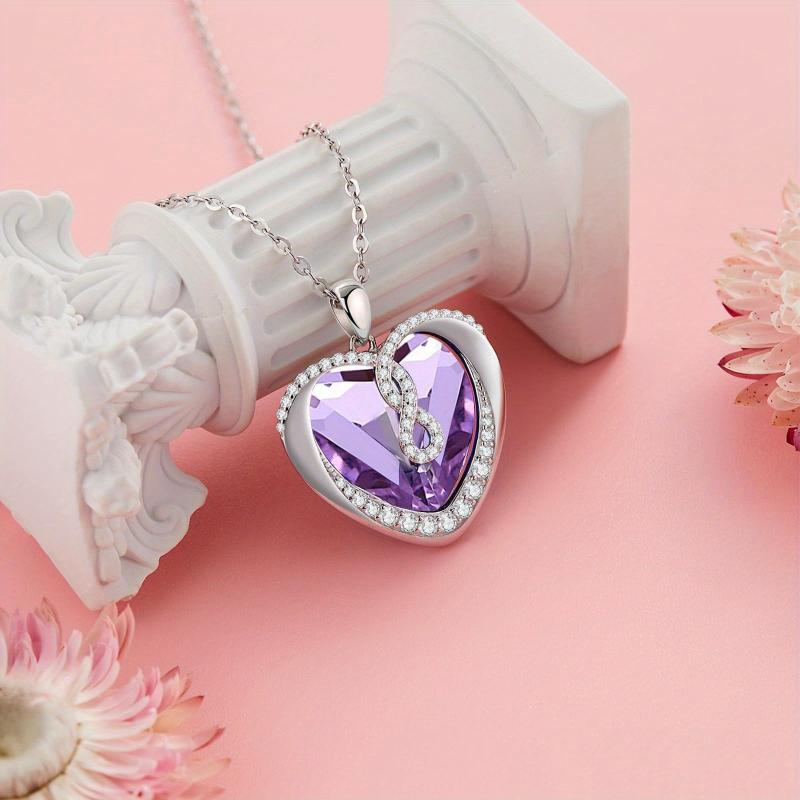 This stunning necklace features a heart-shaped pendant made of 925 sterling silver, adorned with a beautiful purple crystal. The perfect accessory to add a touch of elegance to any outfit.
