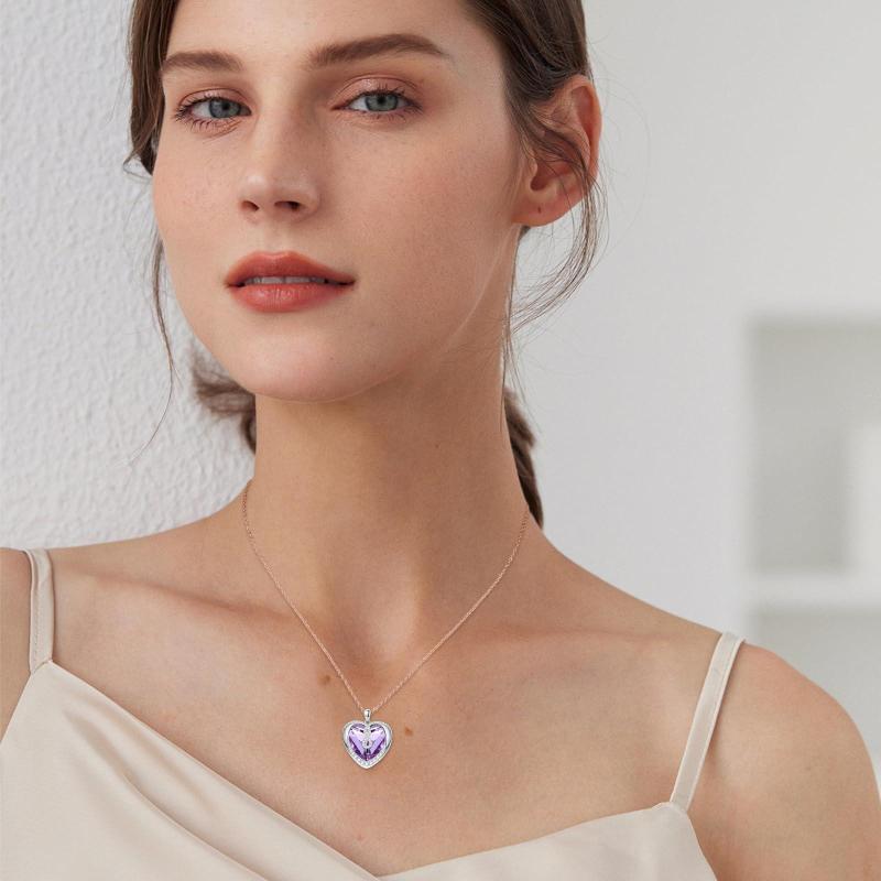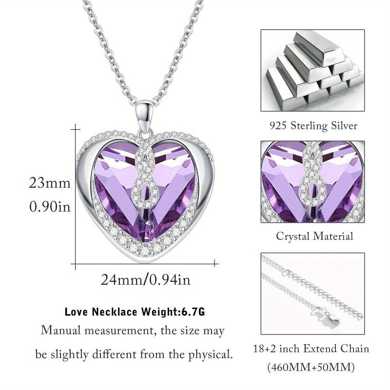 YFNI Heart Shaped 925 Sterling Silver Pendant Necklace with Purple Crystal