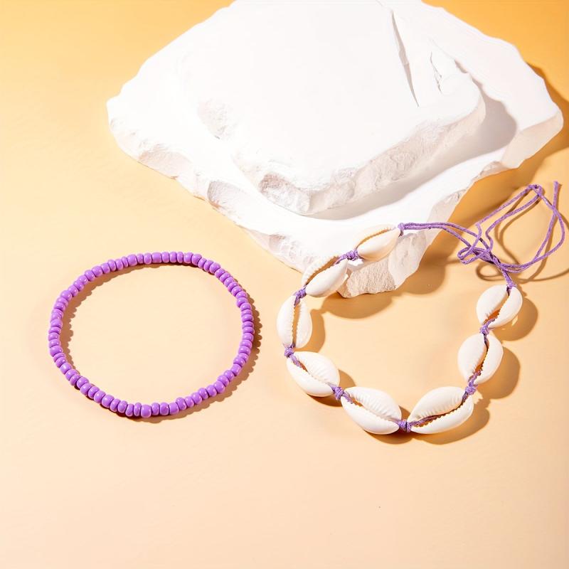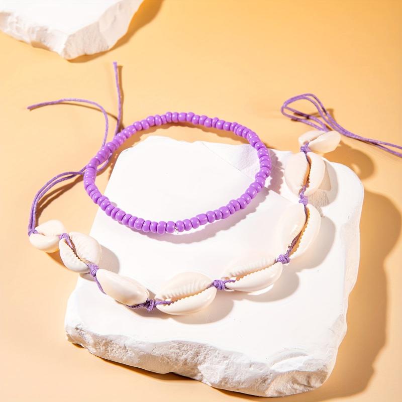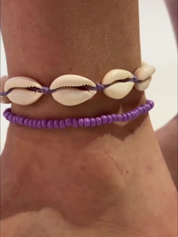 Add a touch of beachy charm to your look with this boho nautical anklet set featuring handwoven resin shells and beads. Perfect for summer vibes!