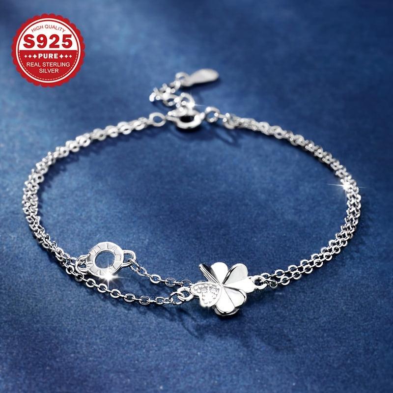 This ankle bracelet for women is crafted from genuine S925 sterling silver and adorned with four delicate floral round rings. It exudes a sense of grace and is suitable for daily wear or beach outings.
