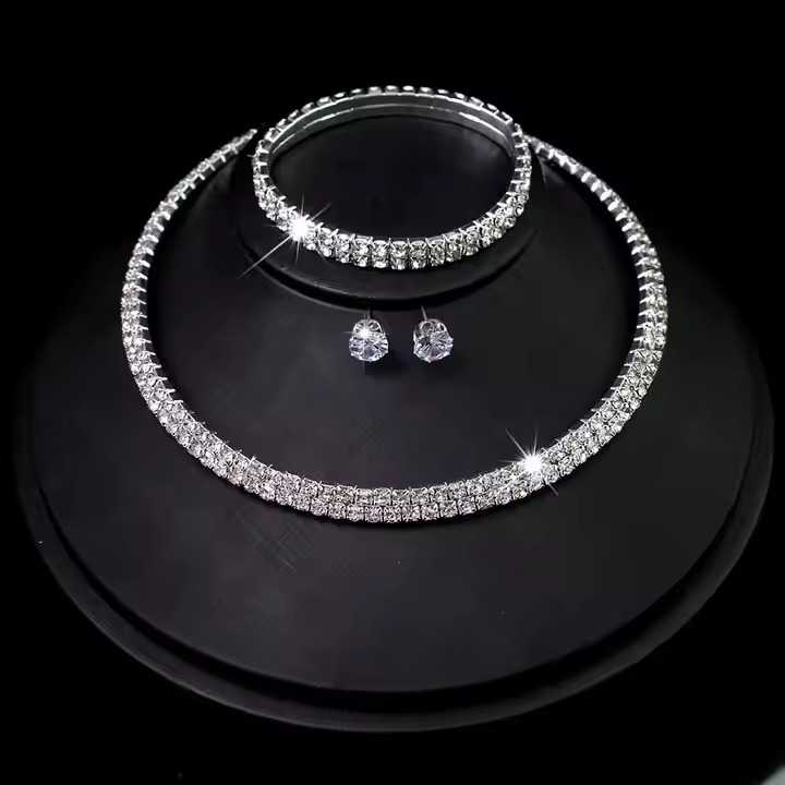 Bling Queen is an affordable fashion jewellery brand with various product types like bracelets, necklaces, earrings, rings, etc. suitable for women, men and kids.This three piece jewellery set includes choker necklace, stud earring and a bangle bracelet. The centerpiece of this set is a striking two layered choker necklace that wraps the neck in a cascade of light. Each layer is meticulously encrusted with perfectly cut zirconia stones, arranged to create a seamless flow of brilliance. The zirconia stud earrings are a masterclass in understated luxury. Each earring showcases a single, flawlessly cut zirconia stone. The minimalist design is timeless, offering a subtle yet impactful way to accessorize. The bangle bracelet is the finishing touch to this exquisite set, offering a sleek silhouette that encircles the wrist in shimmering elegance. The simplicity of the design allows the brilliance of the stones to take center stage.