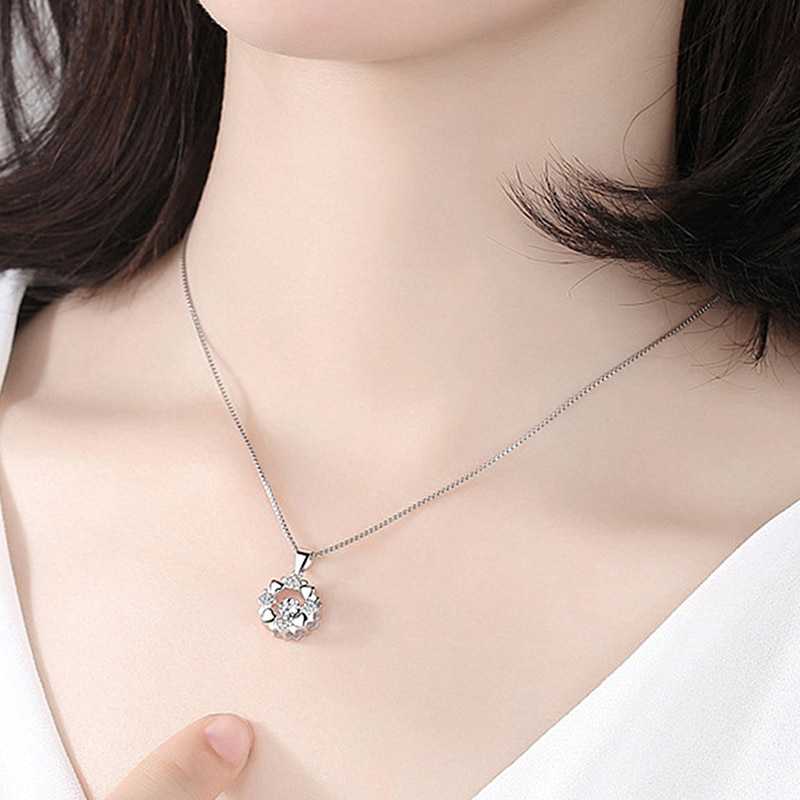 Women's Silver Clavicle Princess Style Floral Heart Pendant Chain