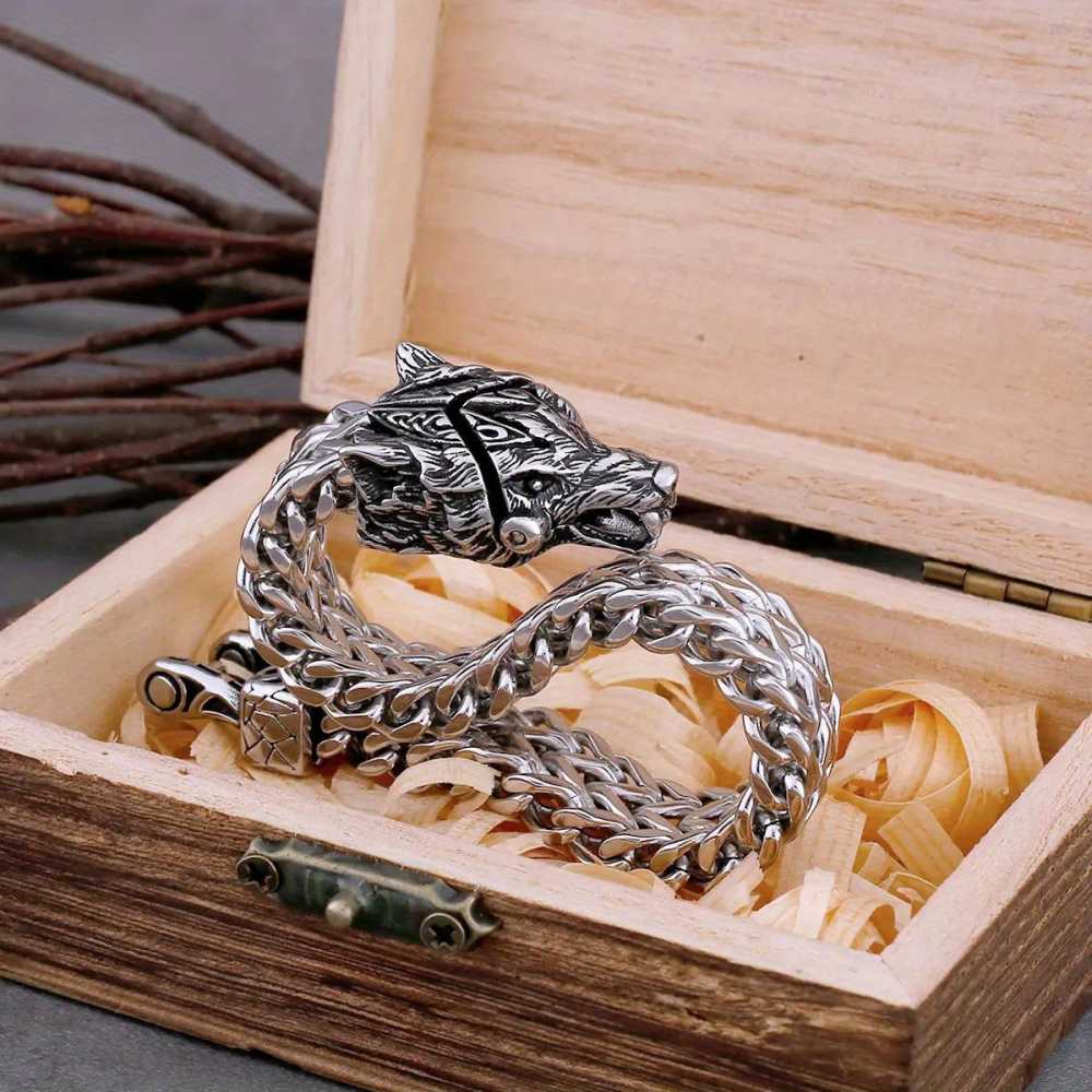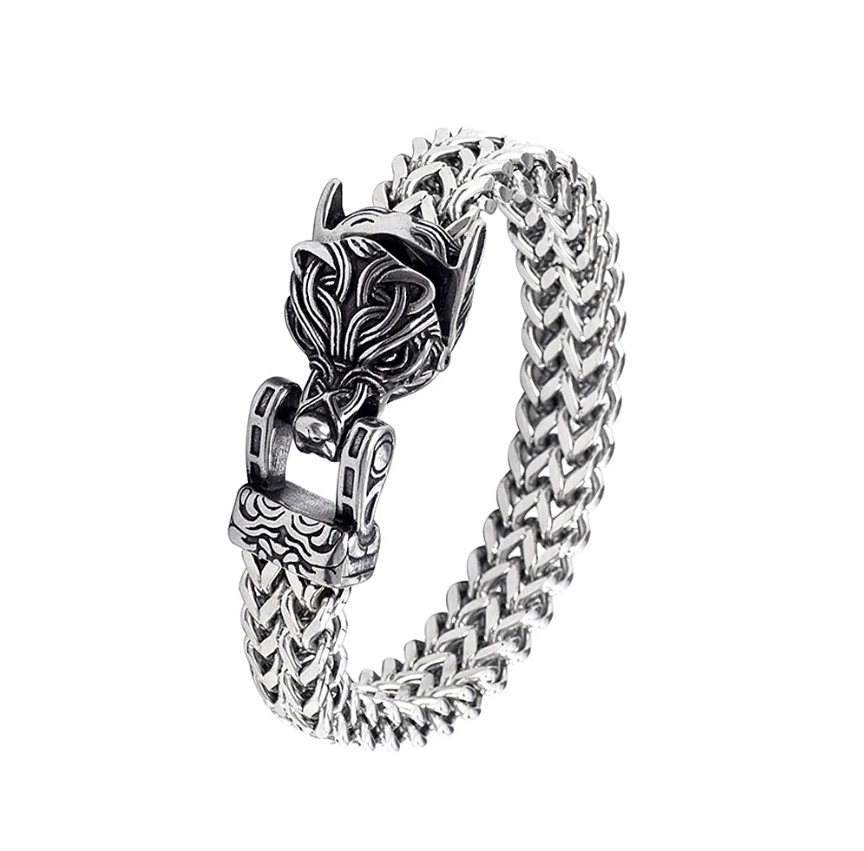 Men's Vintage Viking Wolf Head Stainless Steel Bracelet