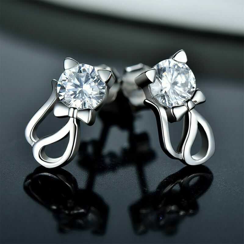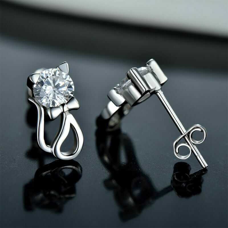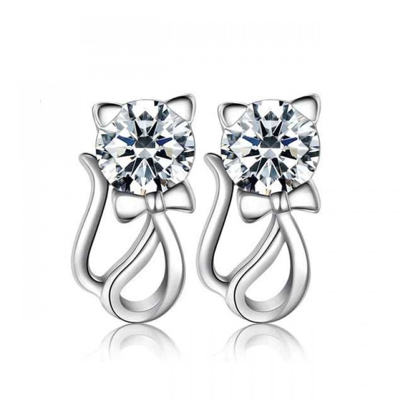Add luxury and elegance to your closet with these silver plated crystal cat stud earrings. These cat pattern stud earrings are perfect for any occasion. Emphasize your appearance by adorning this pair of earrings. Created in high-quality metal, it highlights outstanding artistry and crystal, making it a beguiling pick. Pair these earrings with any casual outfit to complete the look.