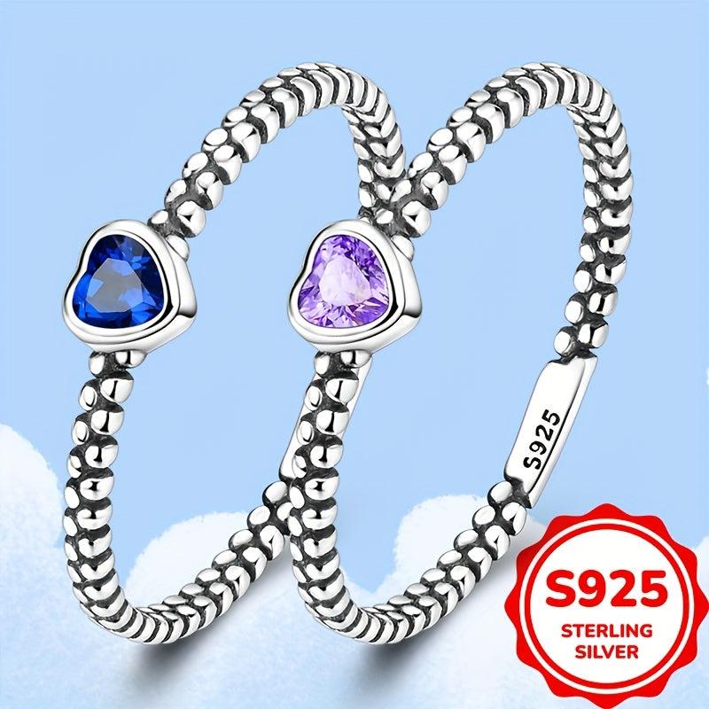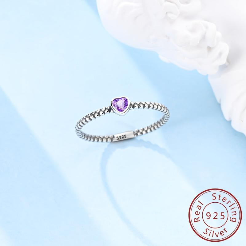 925 Silver Vintage Heart Bangle Bracelet with Purple Cubic Zirconia