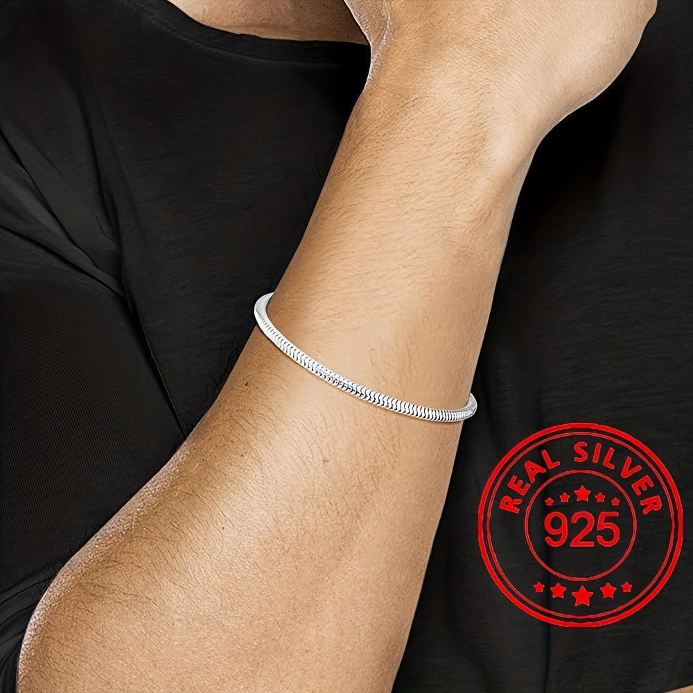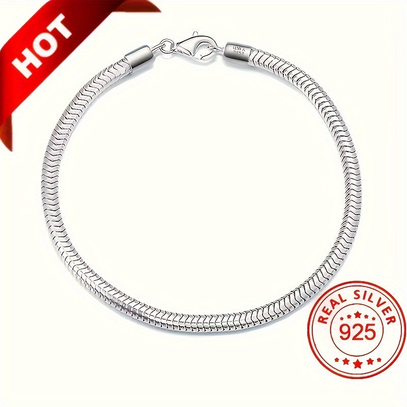 This 925 sterling silver snake chain bracelet is a versatile vintage style accessory. It weighs 4.8g and is ideal for gift giving and parties. Perfect for Valentine's Day and all seasons.