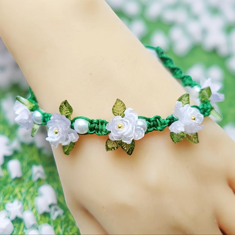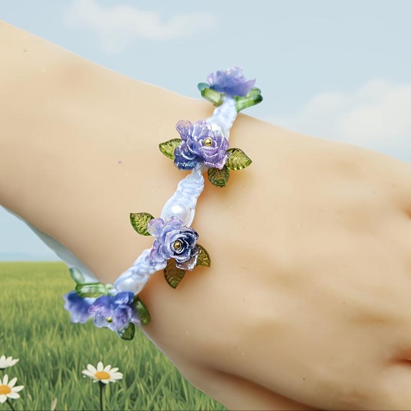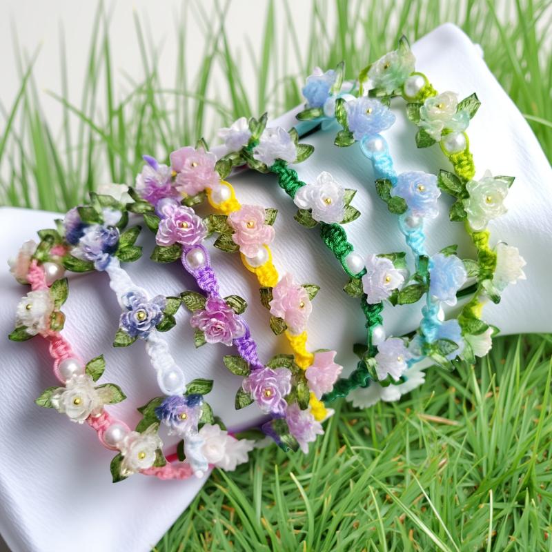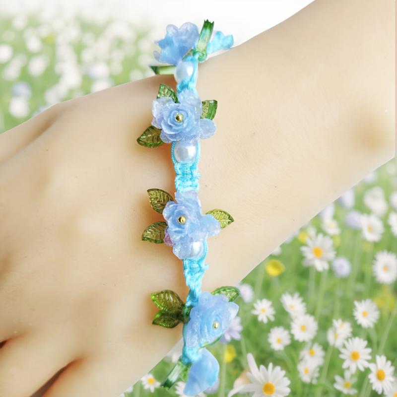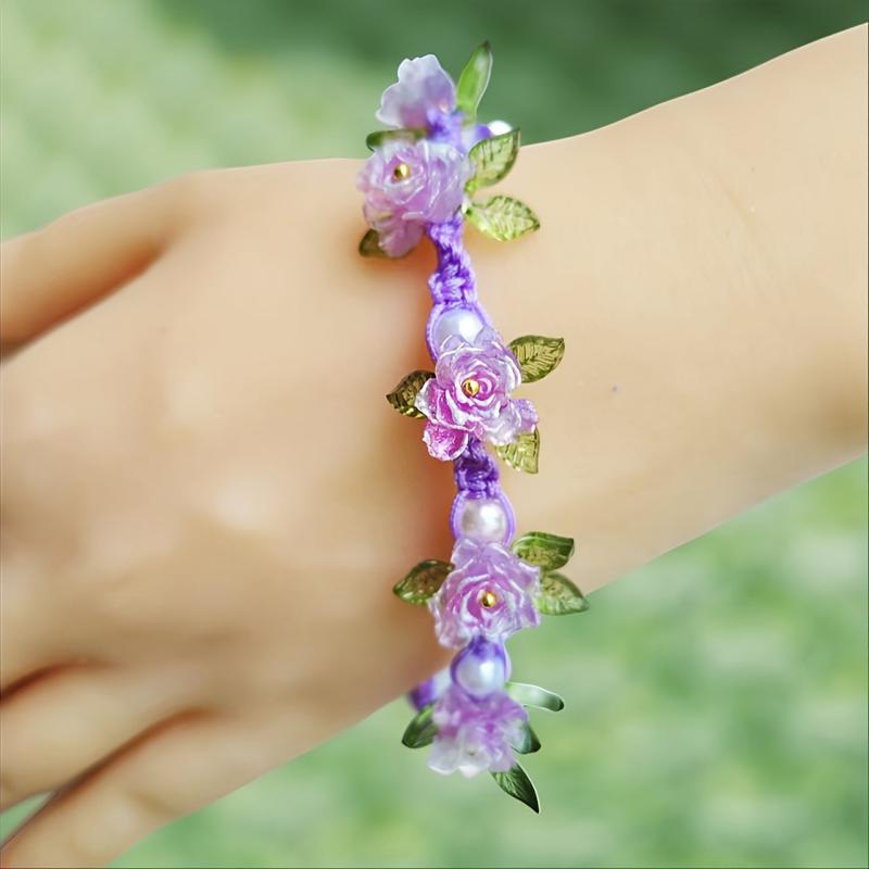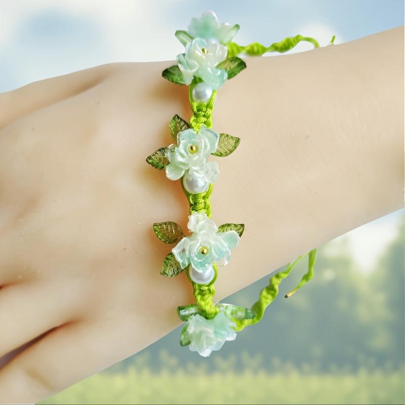Bohemian Floral Bracelets with 3D Flowers & Leaves Adjustable Elastic Beads