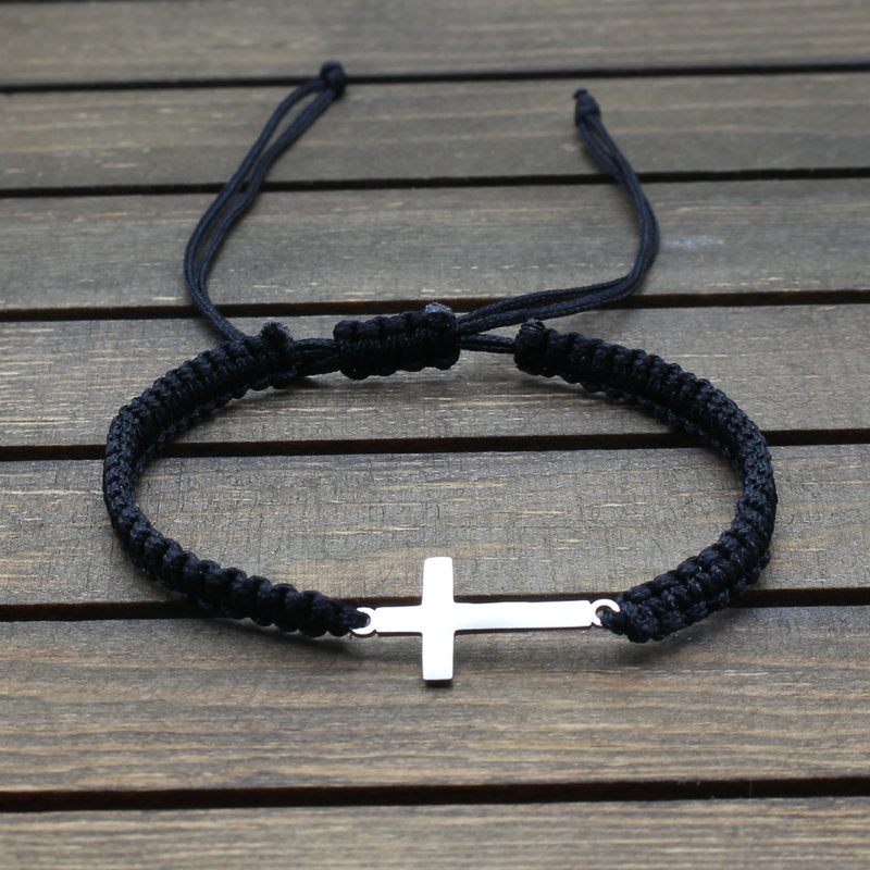 • Stylish braided rope bracelet with cross pattern design