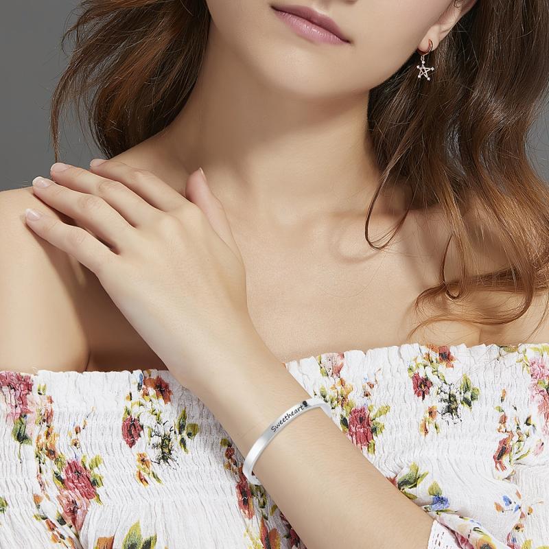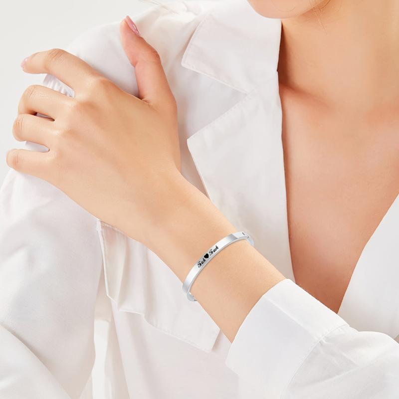 This silvery bracelet is a perfect personalized gift for friends, couples, and family. Made of stainless steel, it is waterproof and rustproof, ensuring lasting quality.
