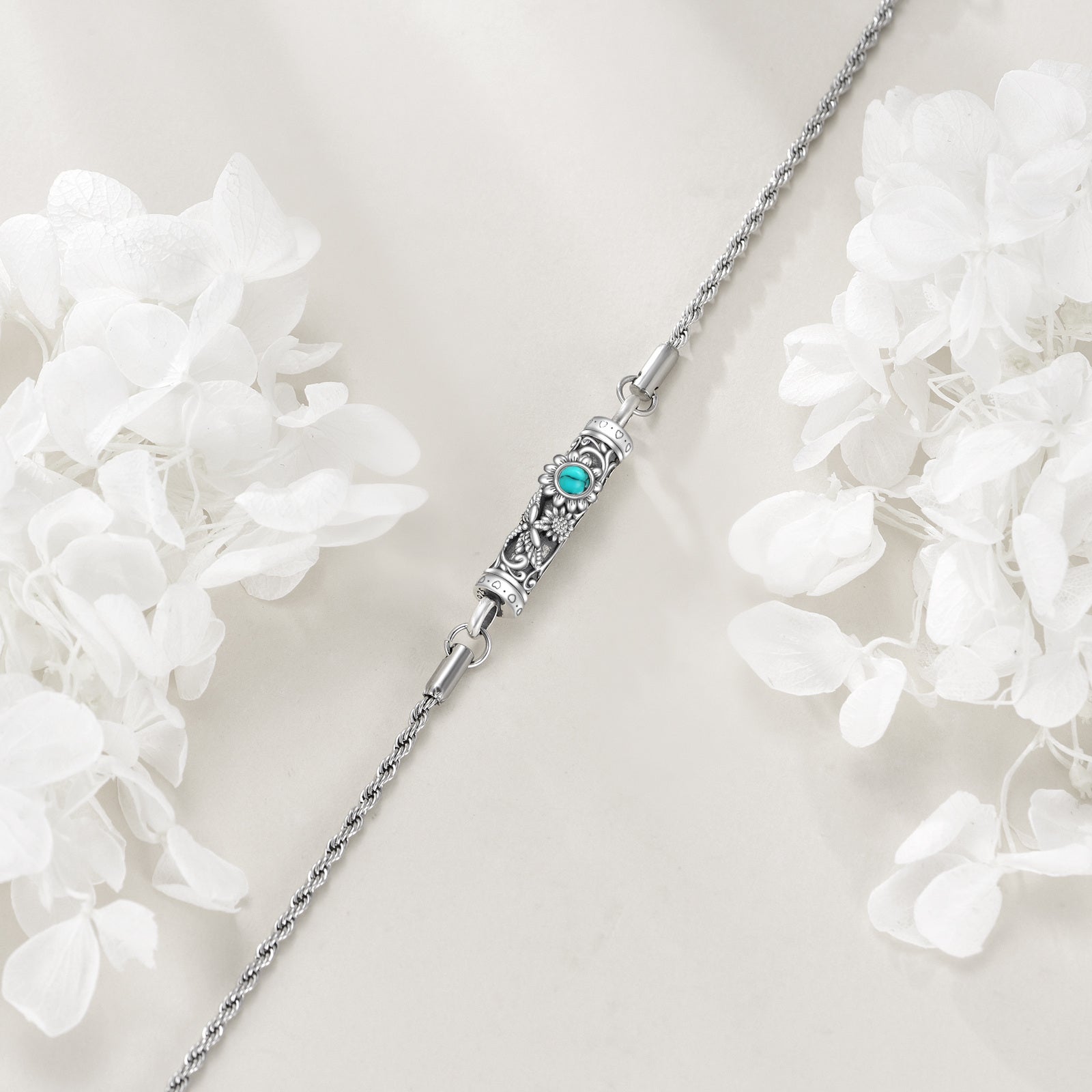 Keep your loved one close with this beautiful Dragonfly Urn Bracelet. Made of 925 sterling silver with a turquoise dragonfly design. The bracelet also functions as a cremation urn to hold a small amount of ashes.