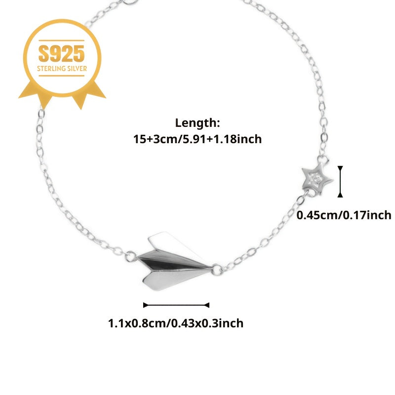 This delicate bracelet features a paper airplane and pentagram star design, perfect for a young woman. It is hypoallergenic, anti-oxidation, and makes a great gift for mothers or ladies.