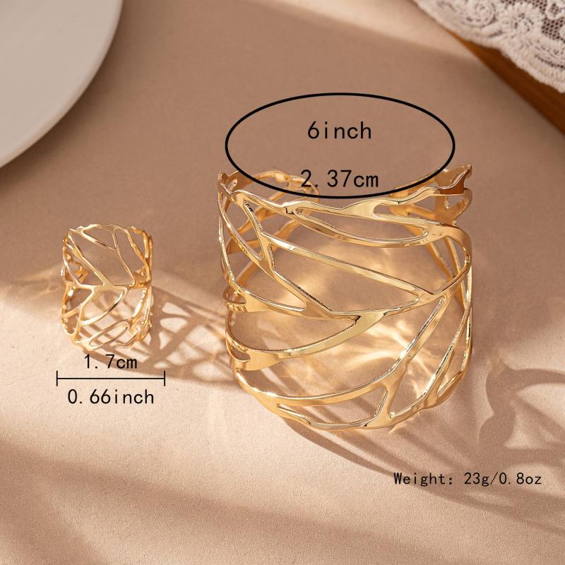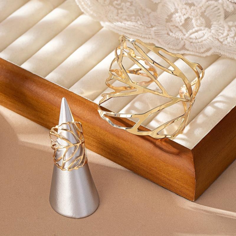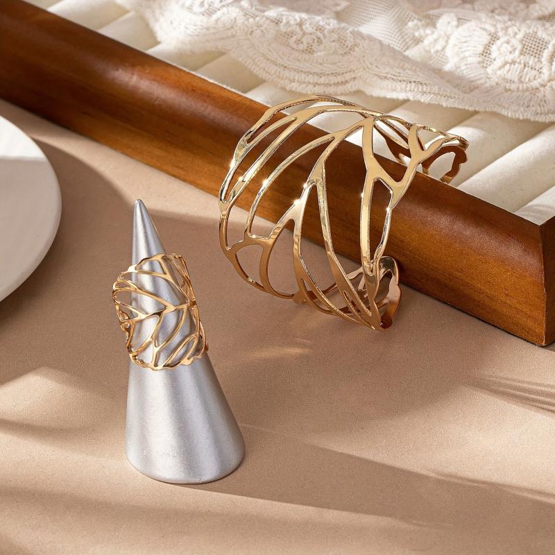 Elegant set featuring a personalized leaf cutout bracelet and a vintage leaf ring. Perfect for women who love nature-inspired jewelry.