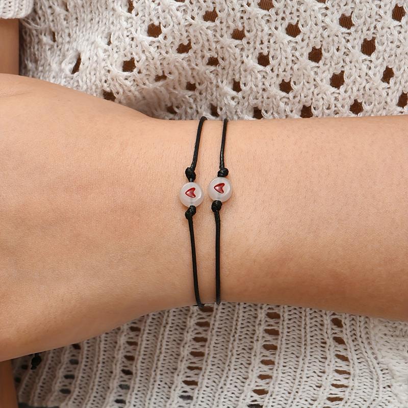 Embrace love with this 2-piece bracelet set featuring luminous PU braided design for a casual and stylish look. Perfect for stacking or sharing with friends.