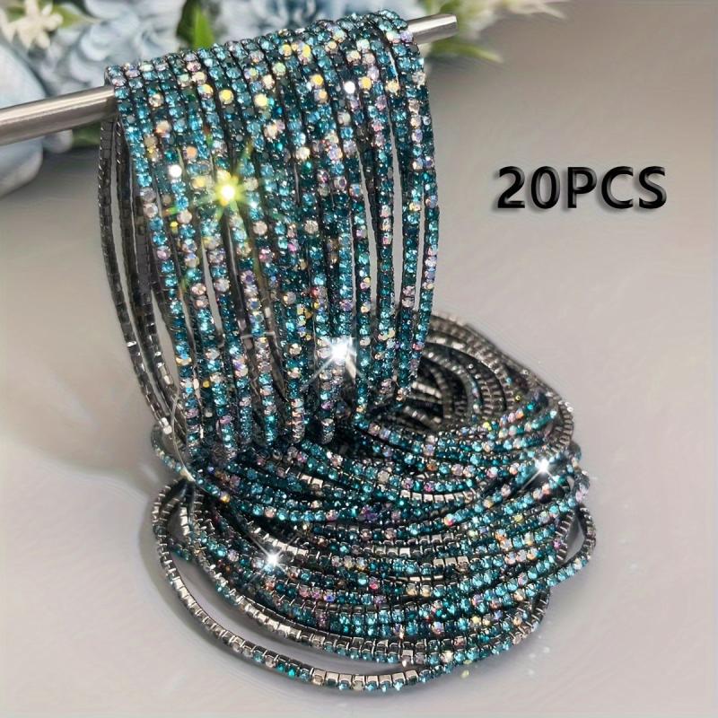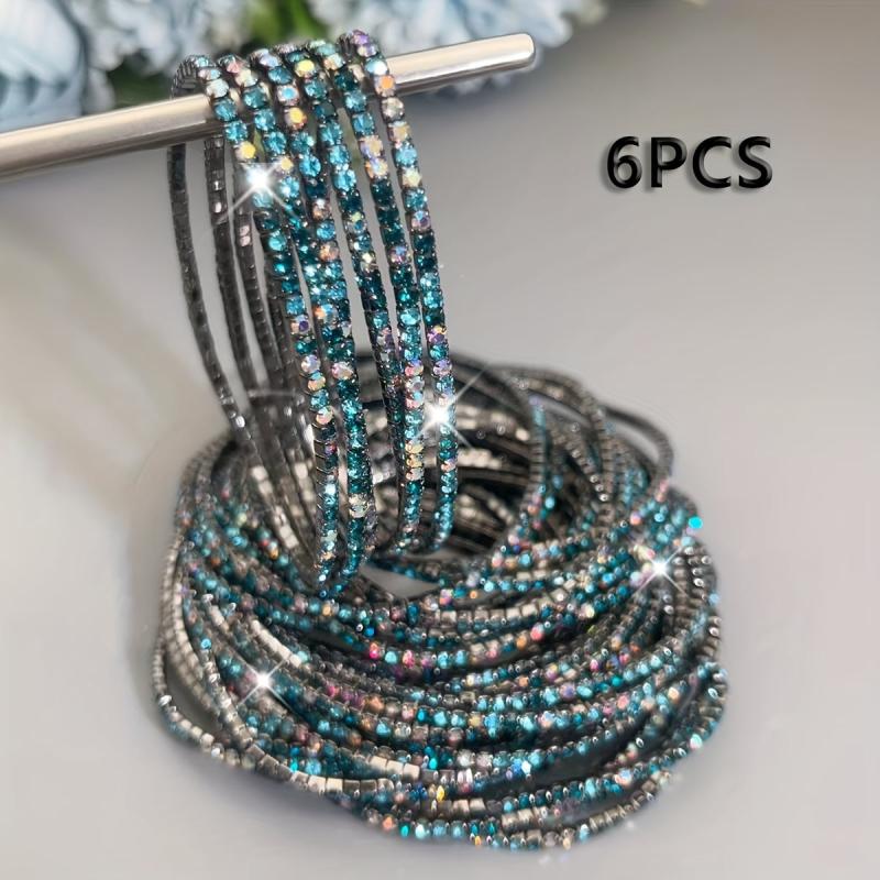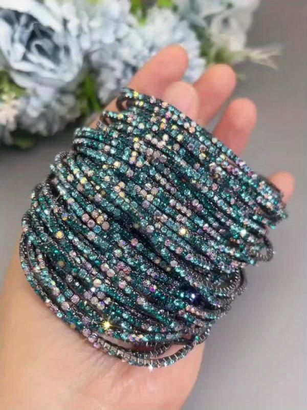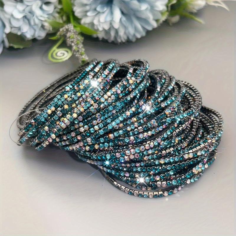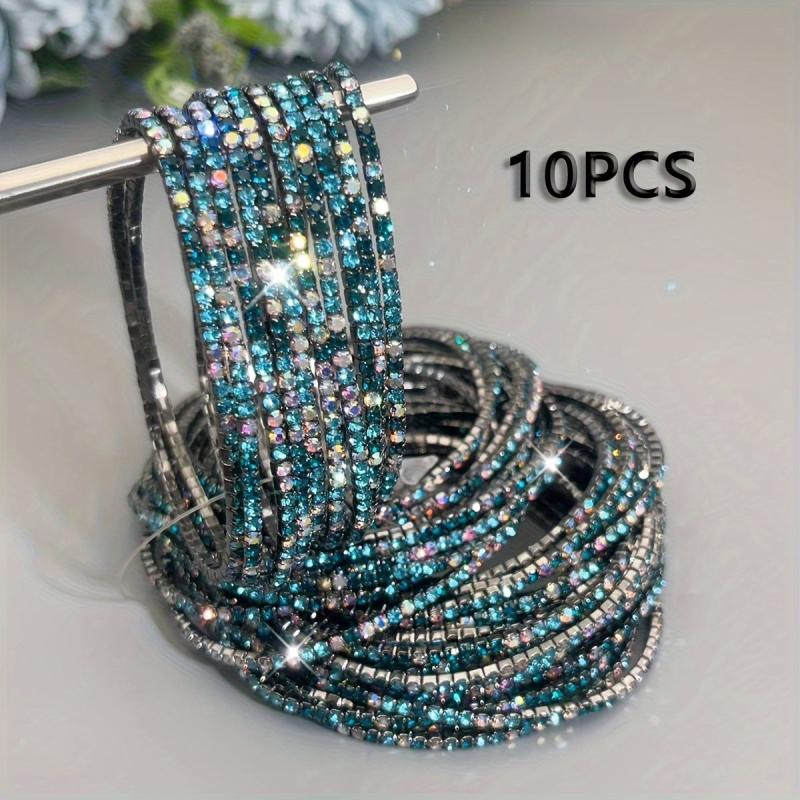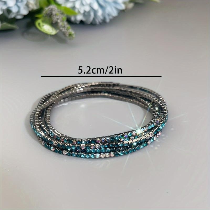 Enhance your wrist with this set of multiple dark lake elastic bracelets featuring rhinestones. Perfect for stacking or wearing individually.