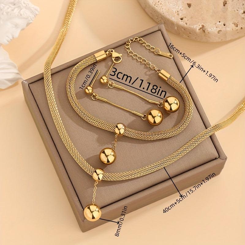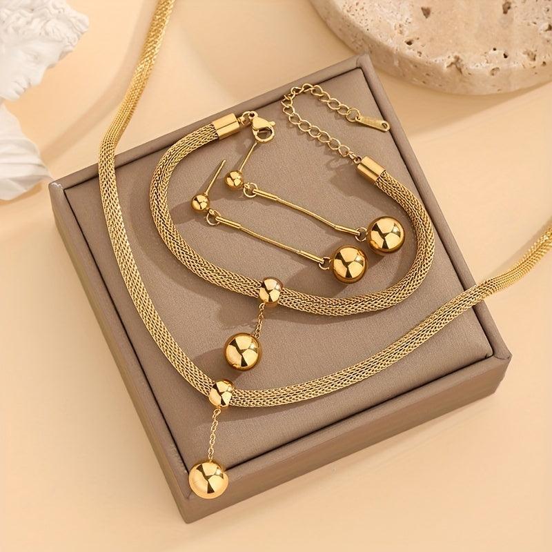 Elegant stainless steel jewelry set with vacuum plating in a vintage style. Suitable for everyday wear and parties, making it a perfect gift for girls.