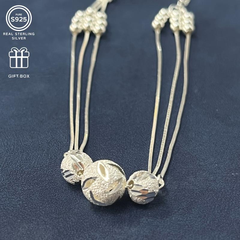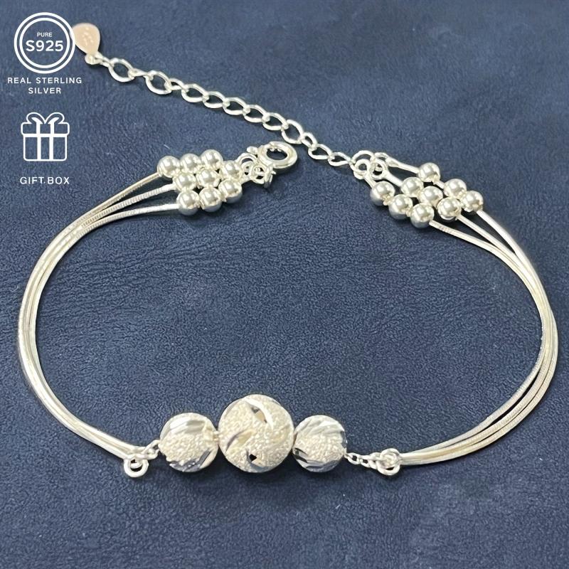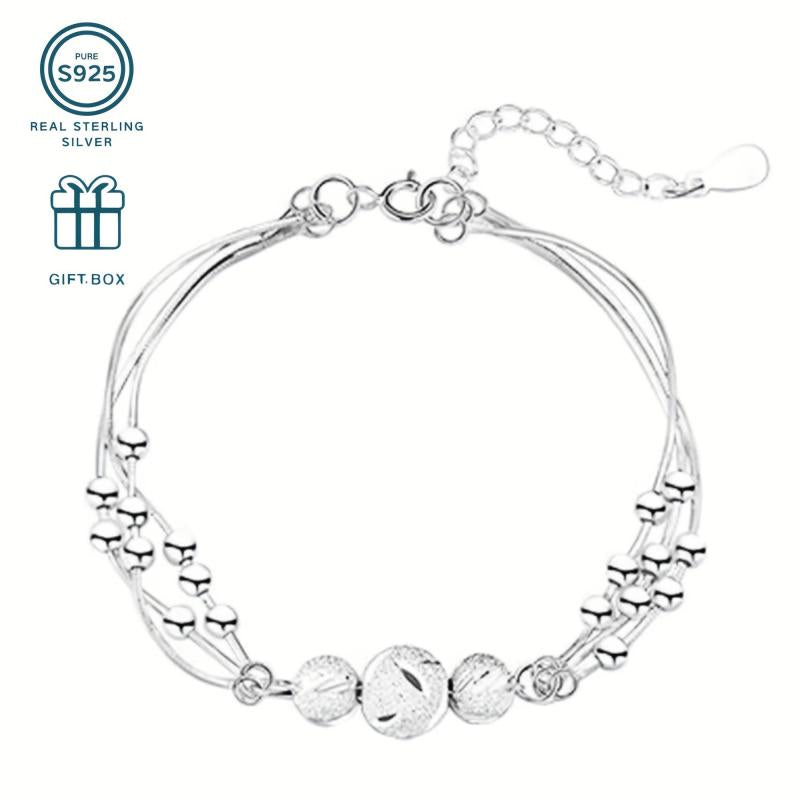 Sterling Silver Bead Bracelet for Women 925 Silver Plated