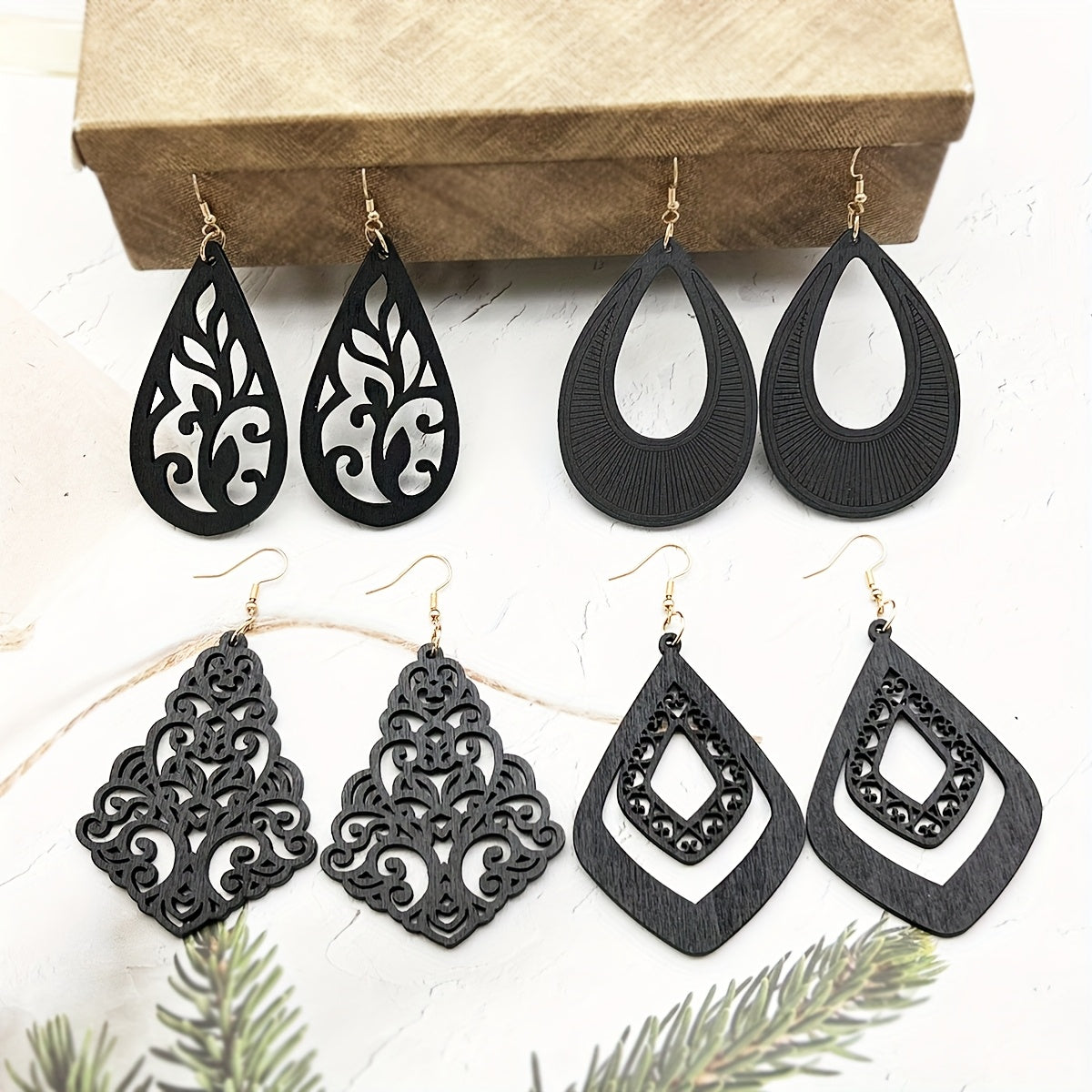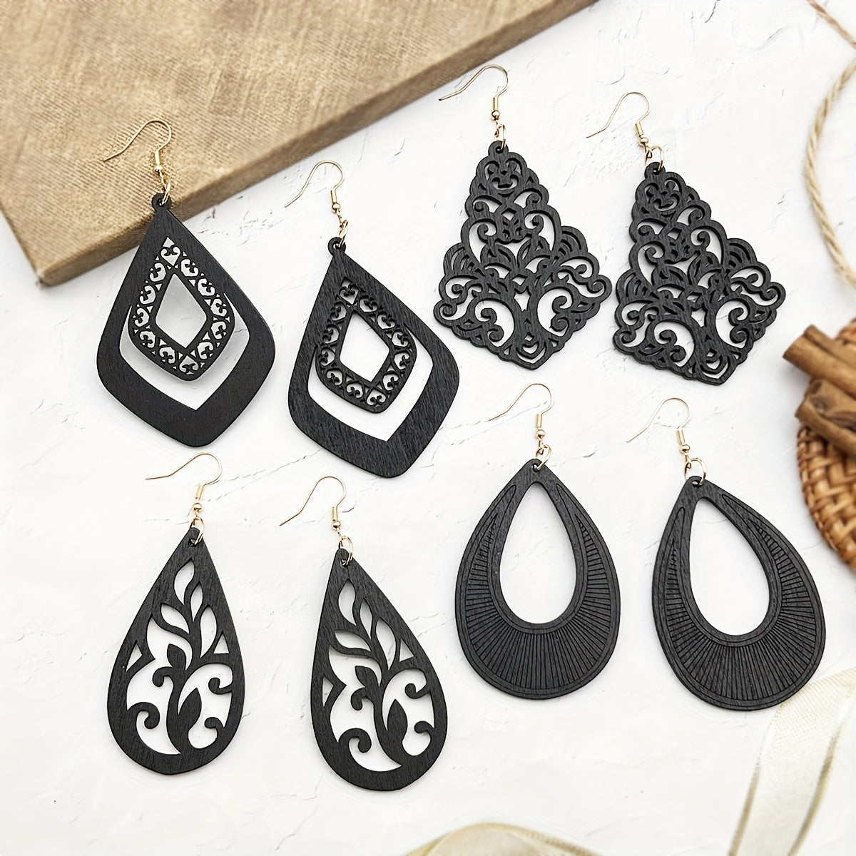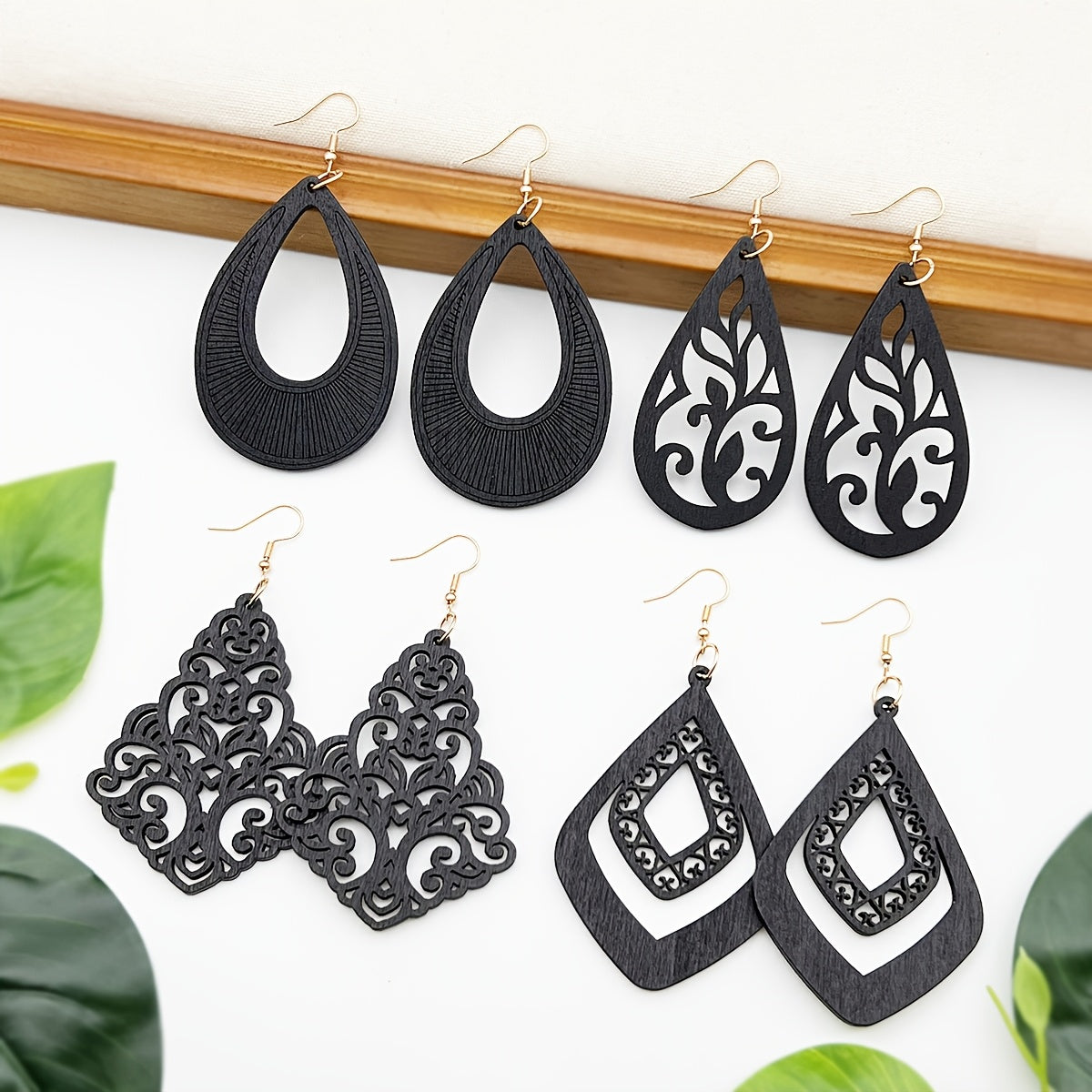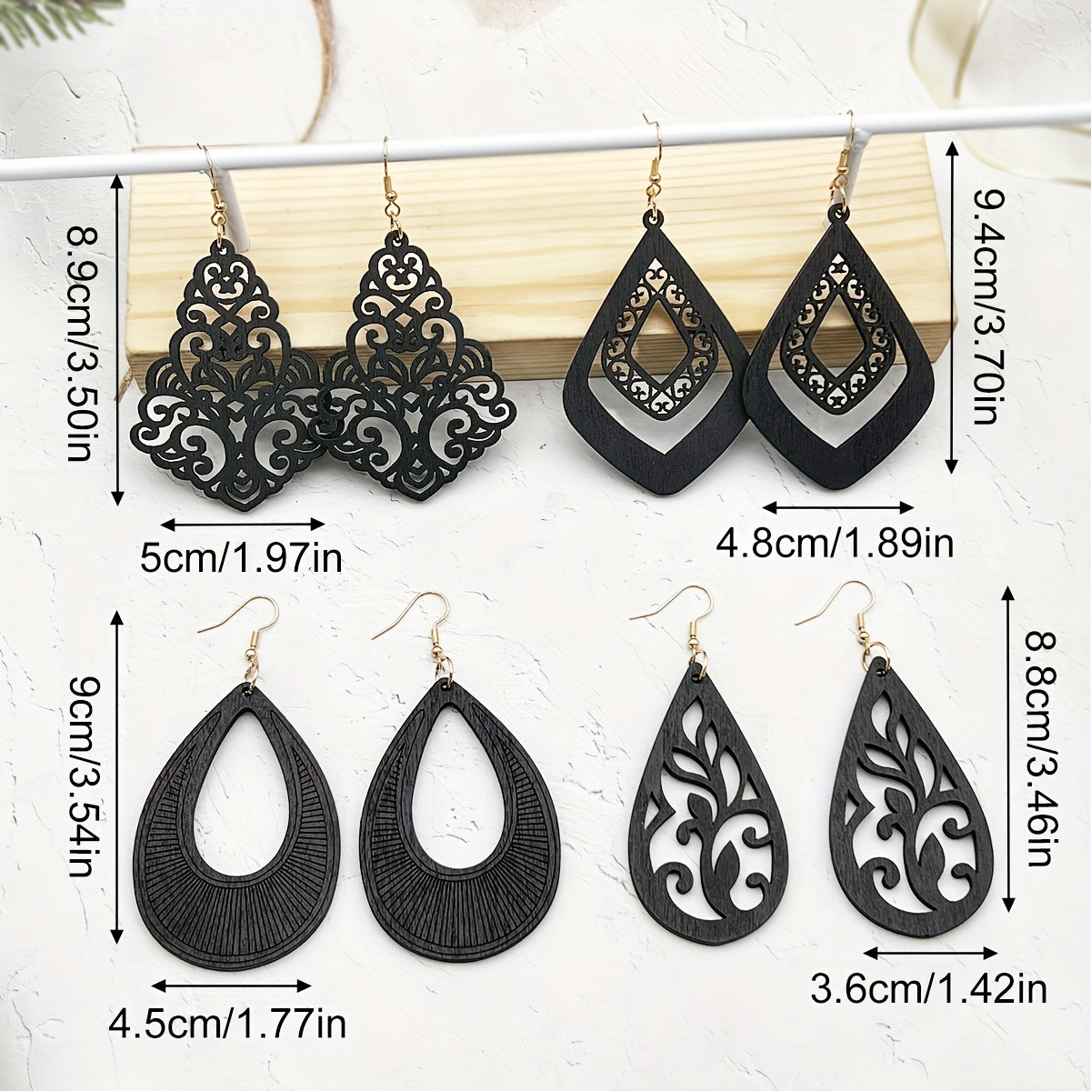 4 Pairs Bohemian Wooden Earrings Geometric Pendant