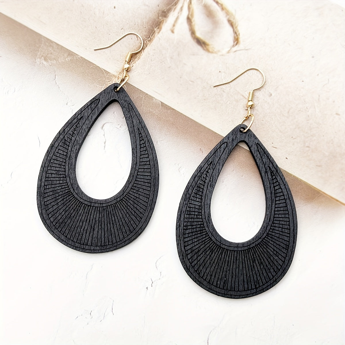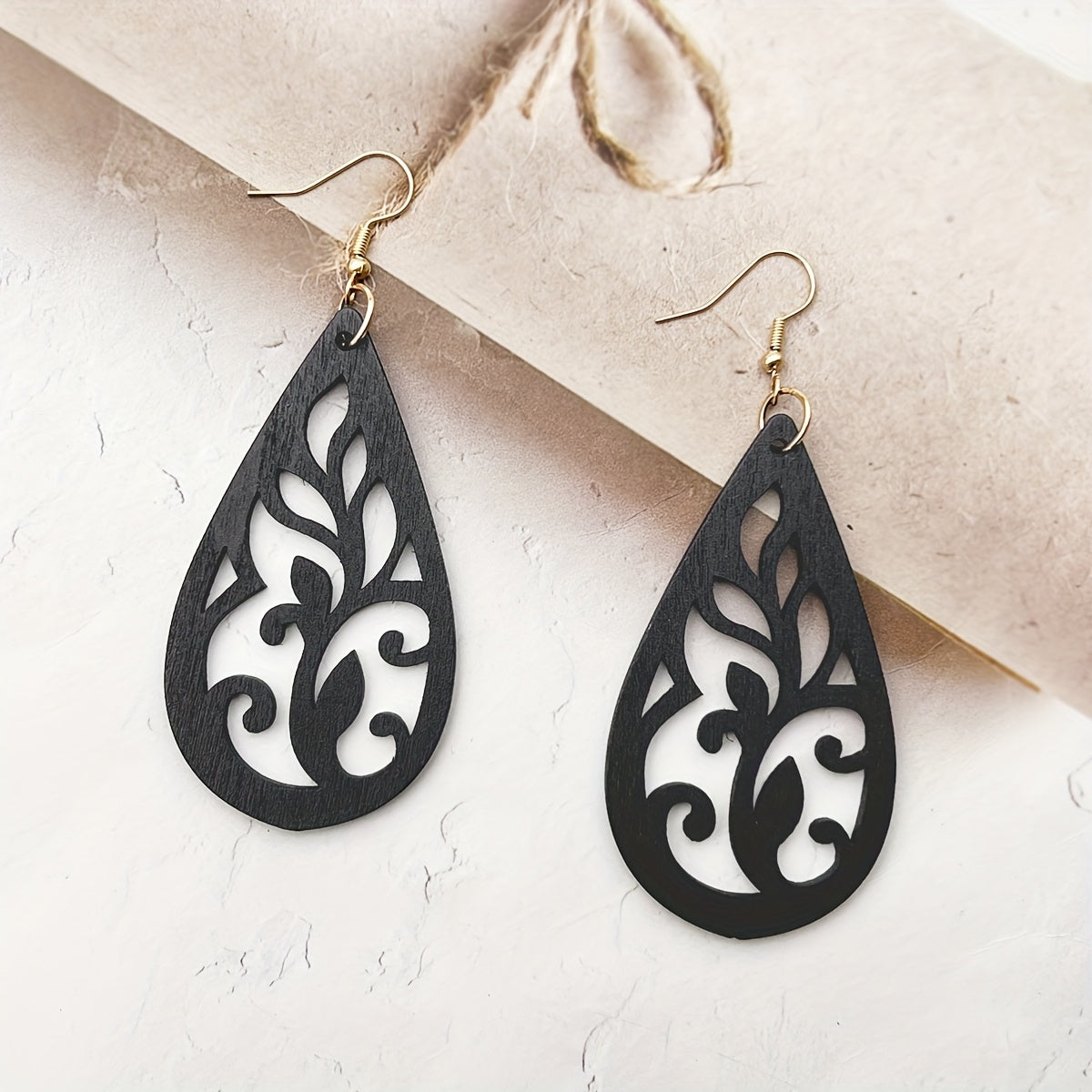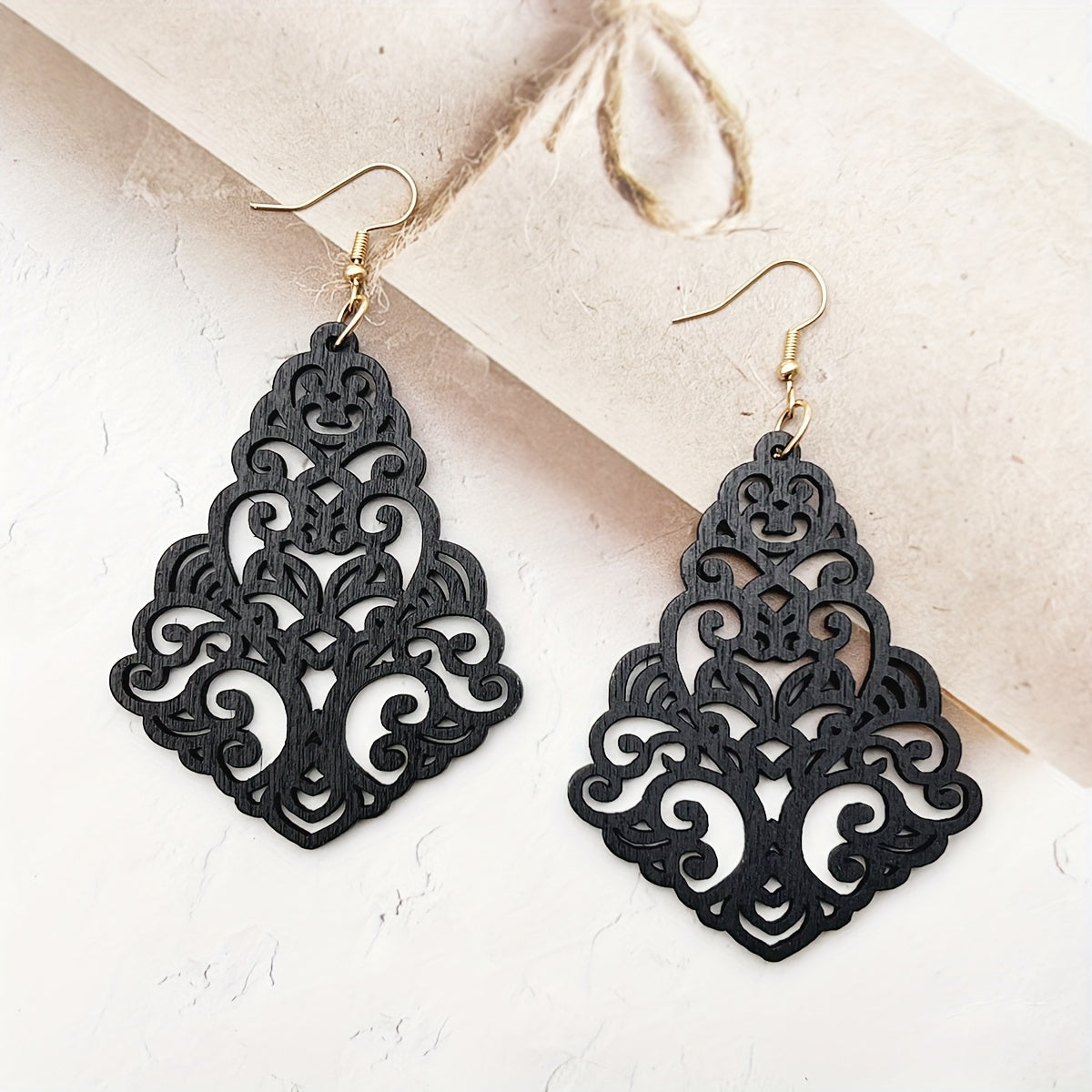 Vintage inspired wooden earrings featuring hollow geometric designs. Exaggerated and unique, perfect for a bohemian style.