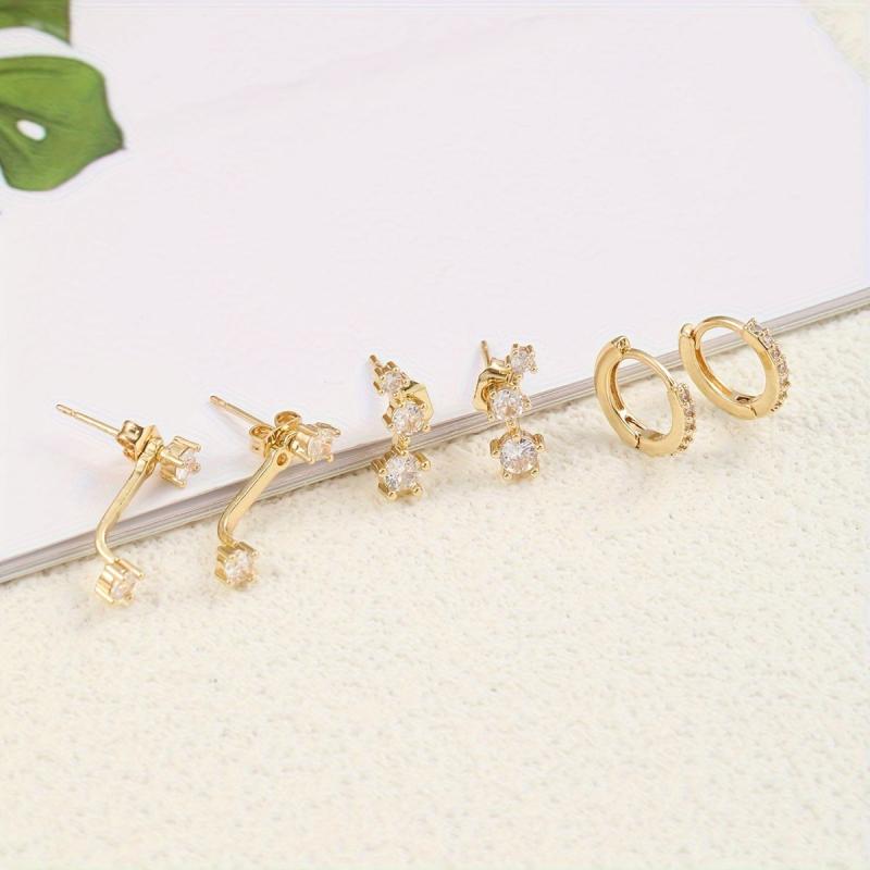This earring set includes 6 pieces of synthetic zirconia copper earrings with stainless steel ear needles. Suitable for daily and vacation wear, all seasons.