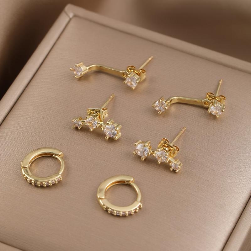 6pc Zirconia Copper Earring Set Women Stainless Steel Ear Needle No Plating