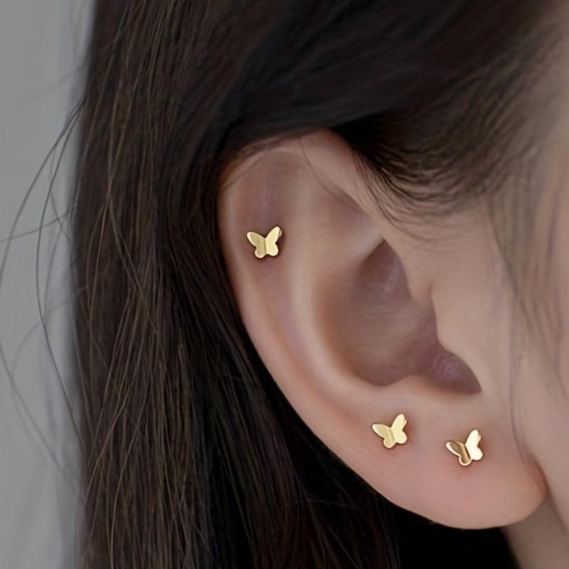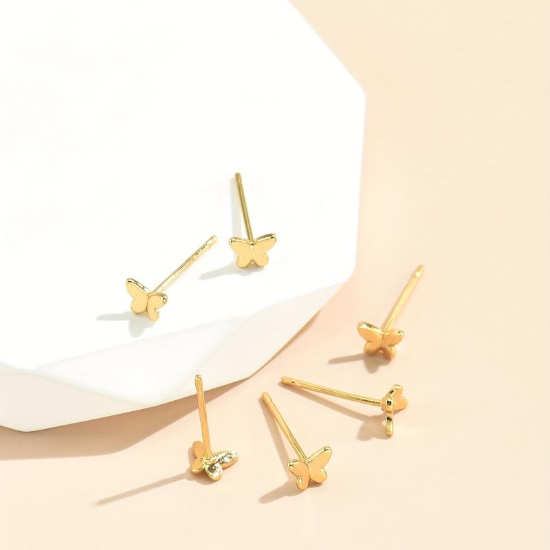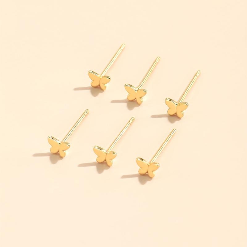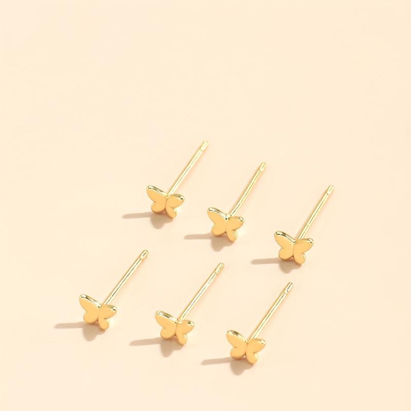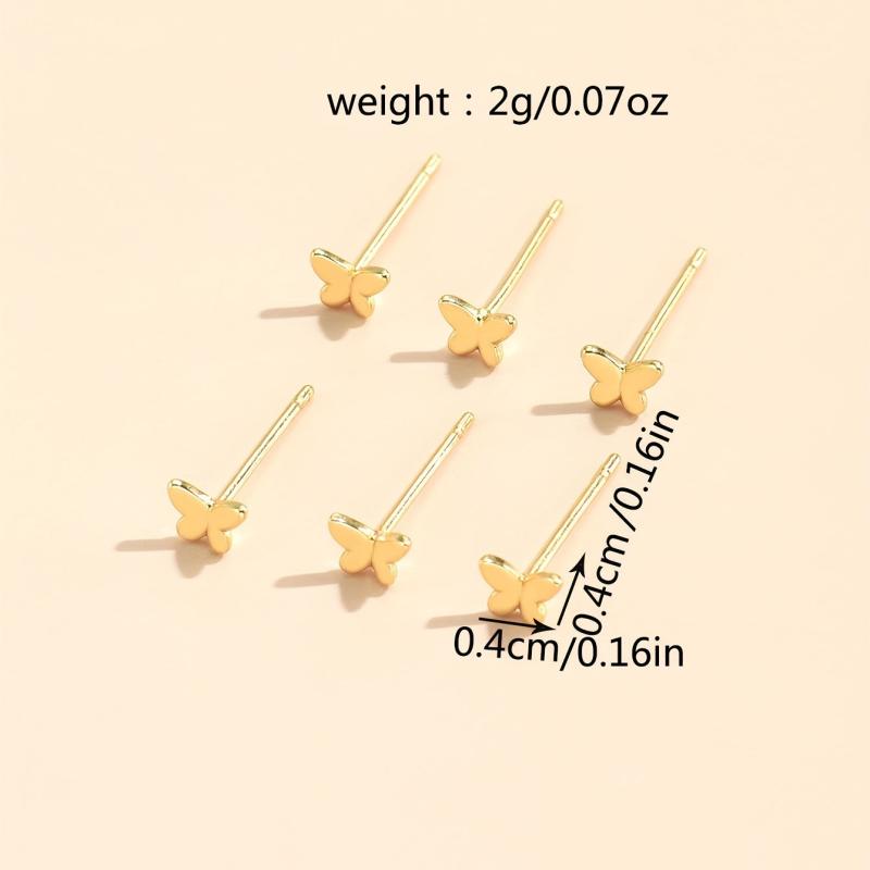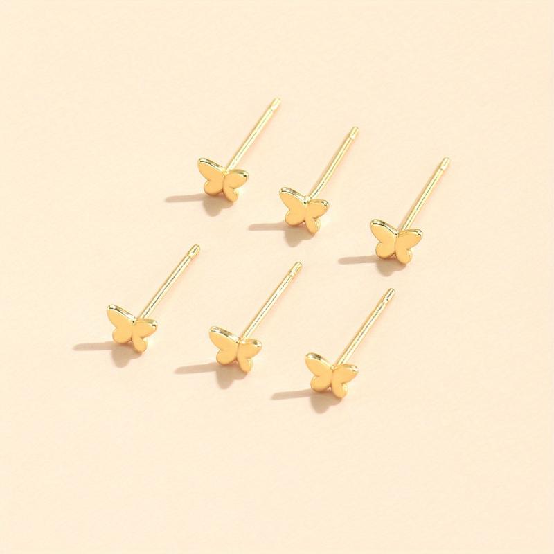 6pcs Butterfly Stud Earrings 14K Plated Female Gift