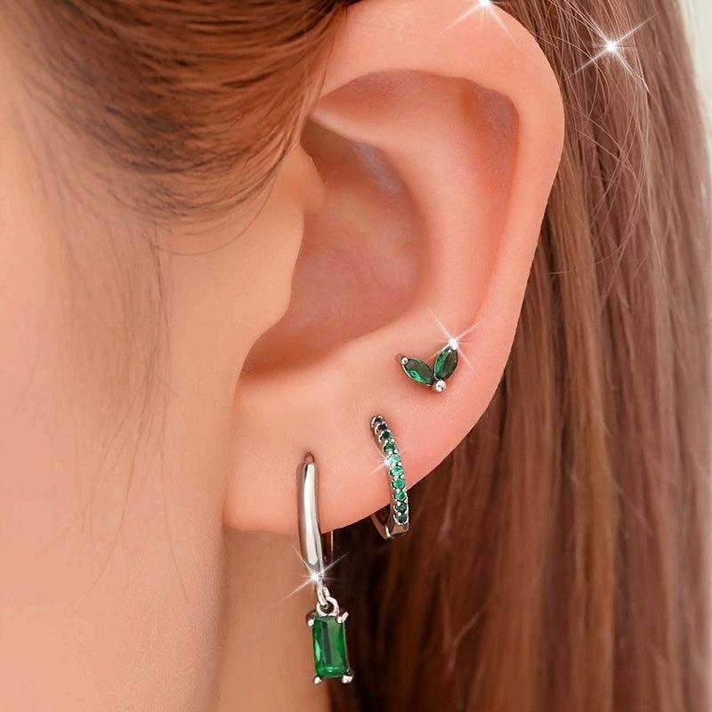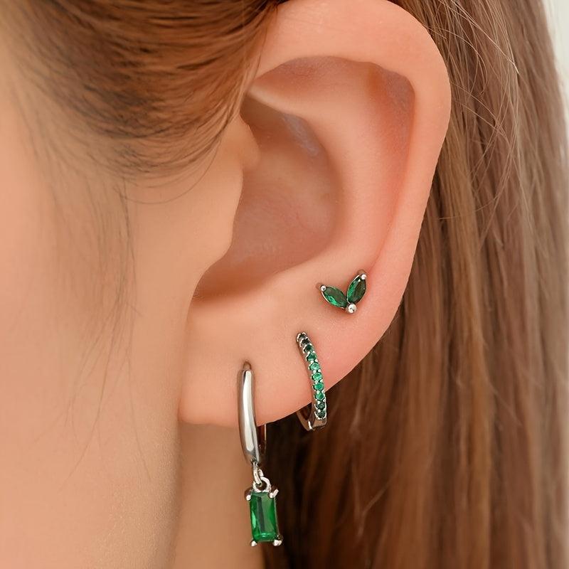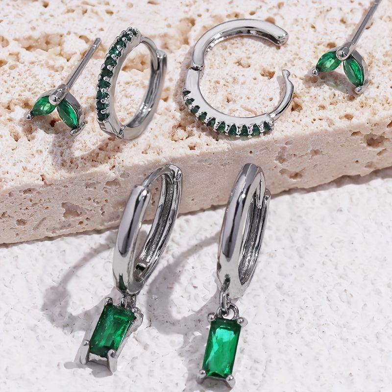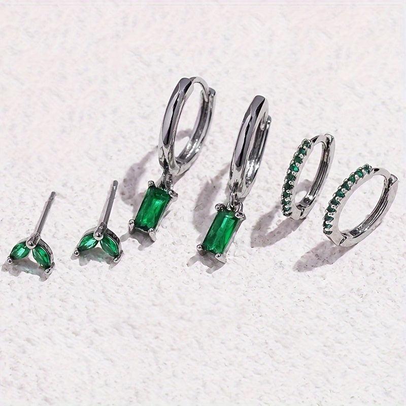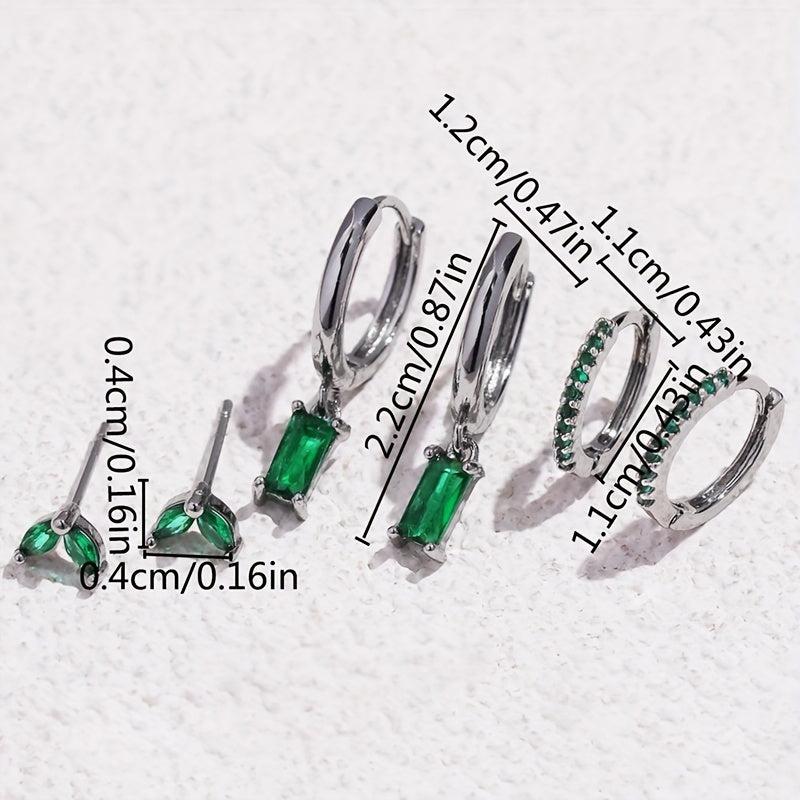 Elevate your style with this set of 6 fashionable earrings featuring cubic zirconia square decorations. Perfect for daily wear.