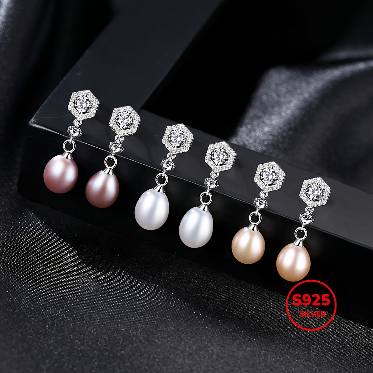 Elegant 925 silver drop earrings with lustrous freshwater pearls, perfect for any occasion.