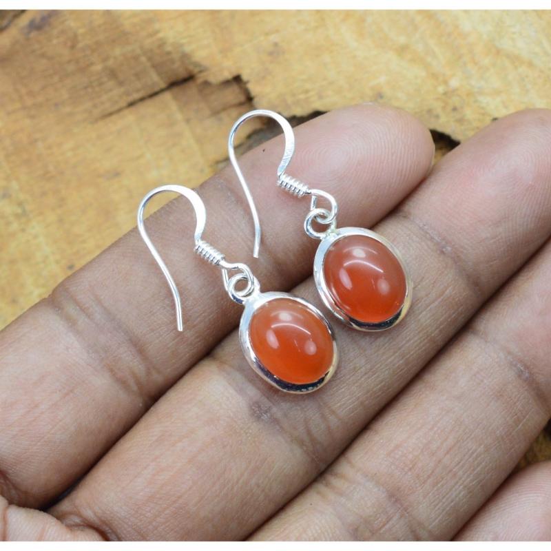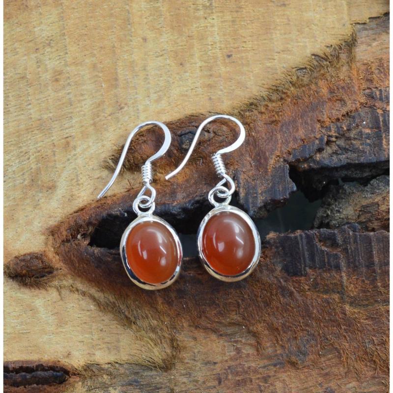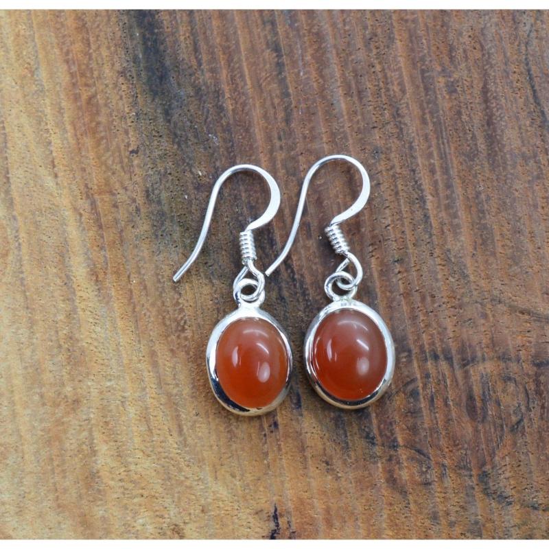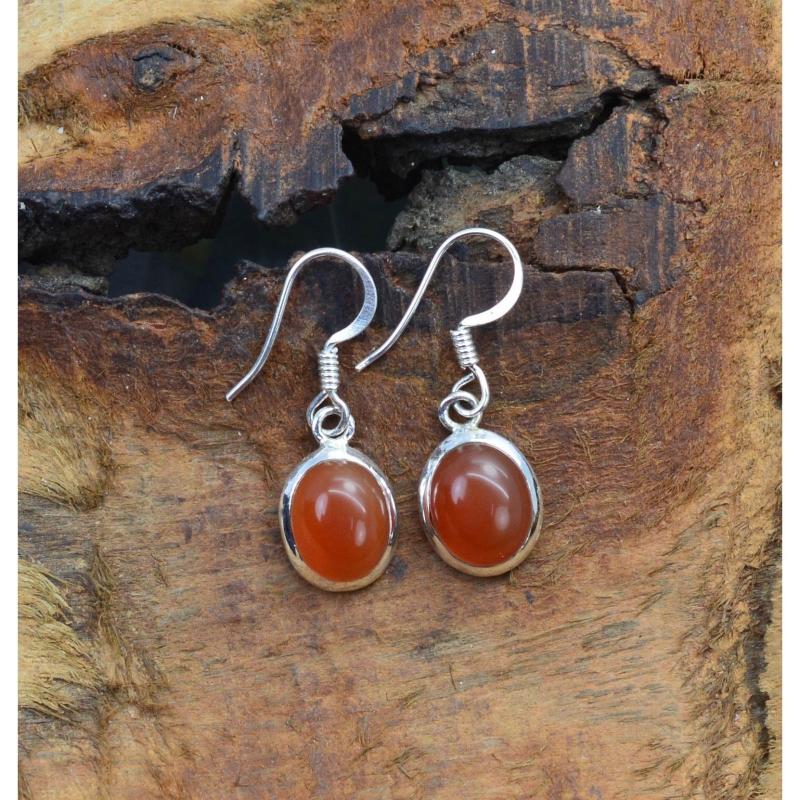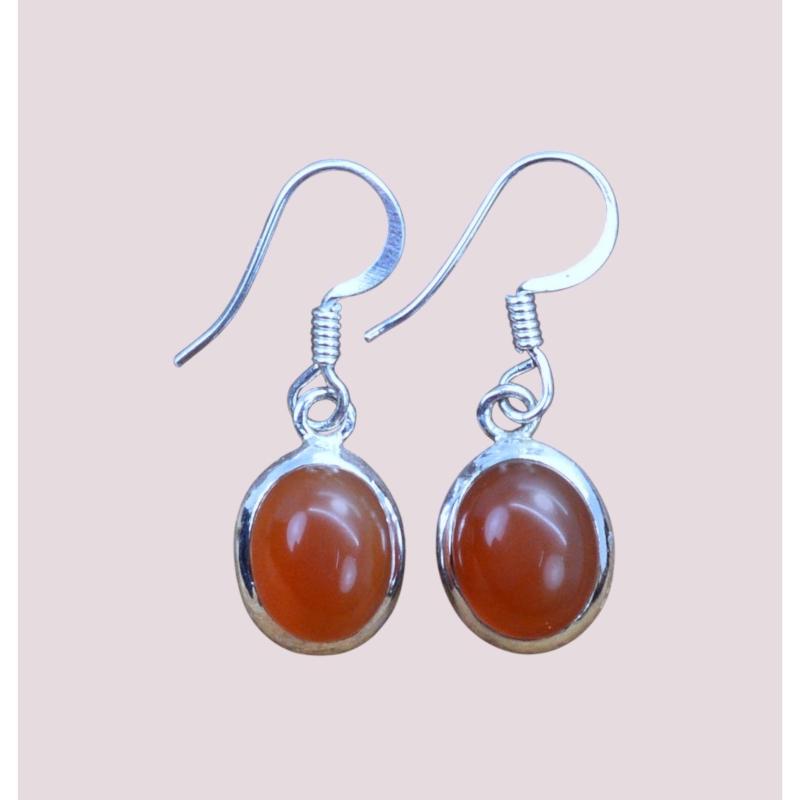 Elegant and stylish 925 silver hook earrings featuring a pair of gemstones in Carnelian, Labradorite, Rose Quartz, and Chalcedony. Perfect for adding a pop of color to any outfit.