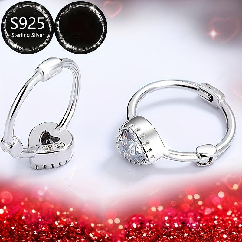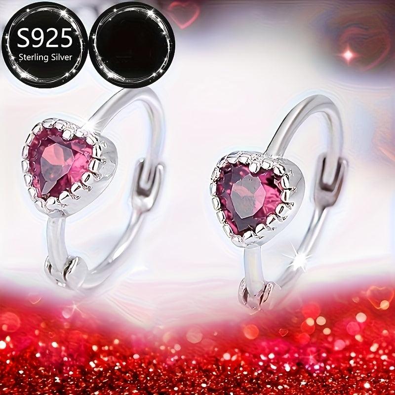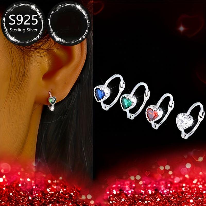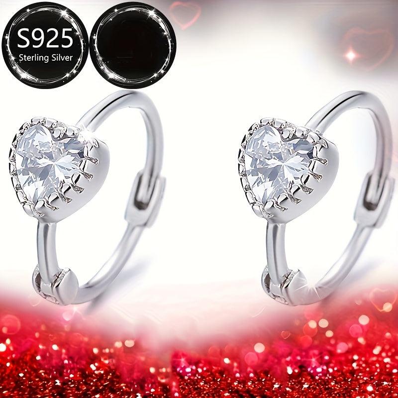 These beautiful heart earrings are made of 925 silver and feature sparkling CZ stones. They are lightweight and durable, perfect for everyday wear.