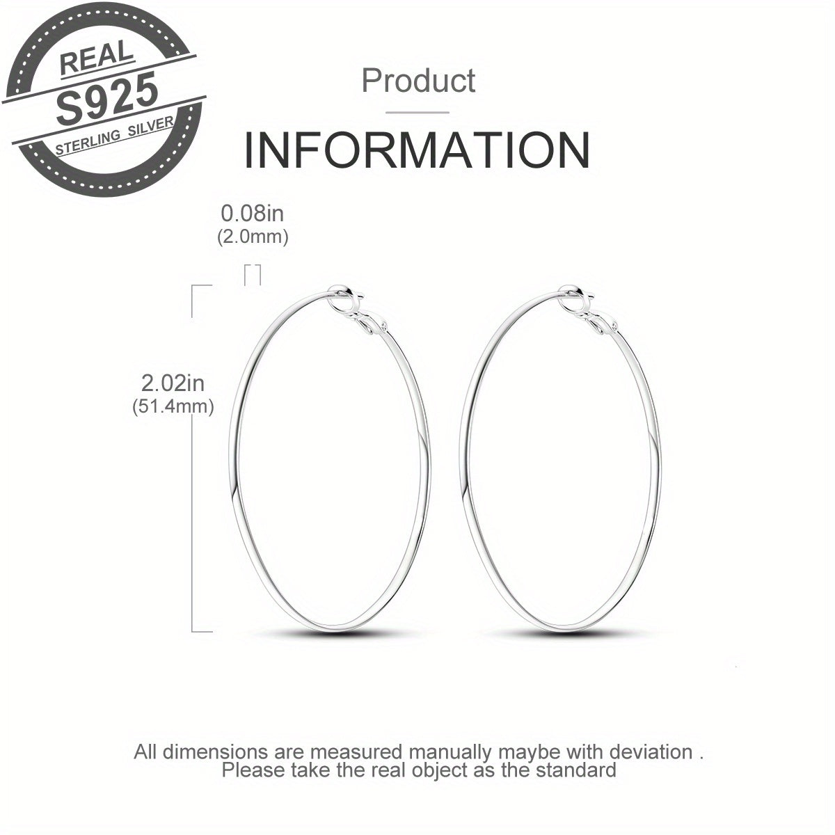 Add a touch of elegance to your outfit with these stylish 925 silver hoop earrings. These hypoallergenic earrings are 50mm in size, perfect for a minimalist and fashionable look.