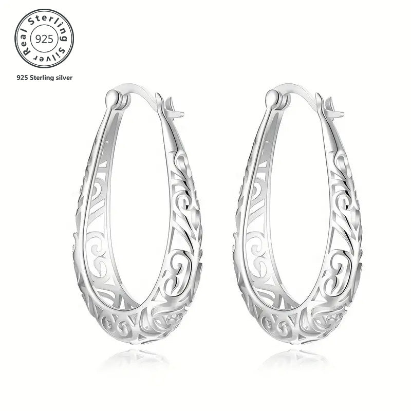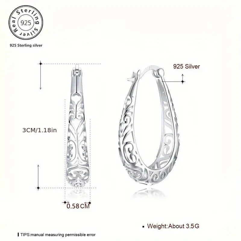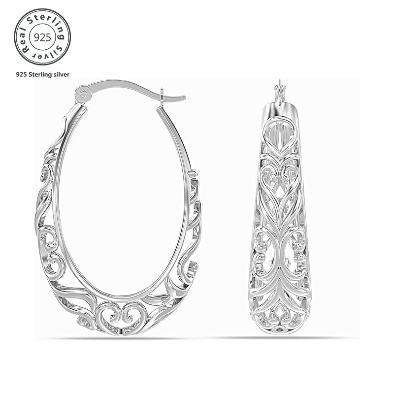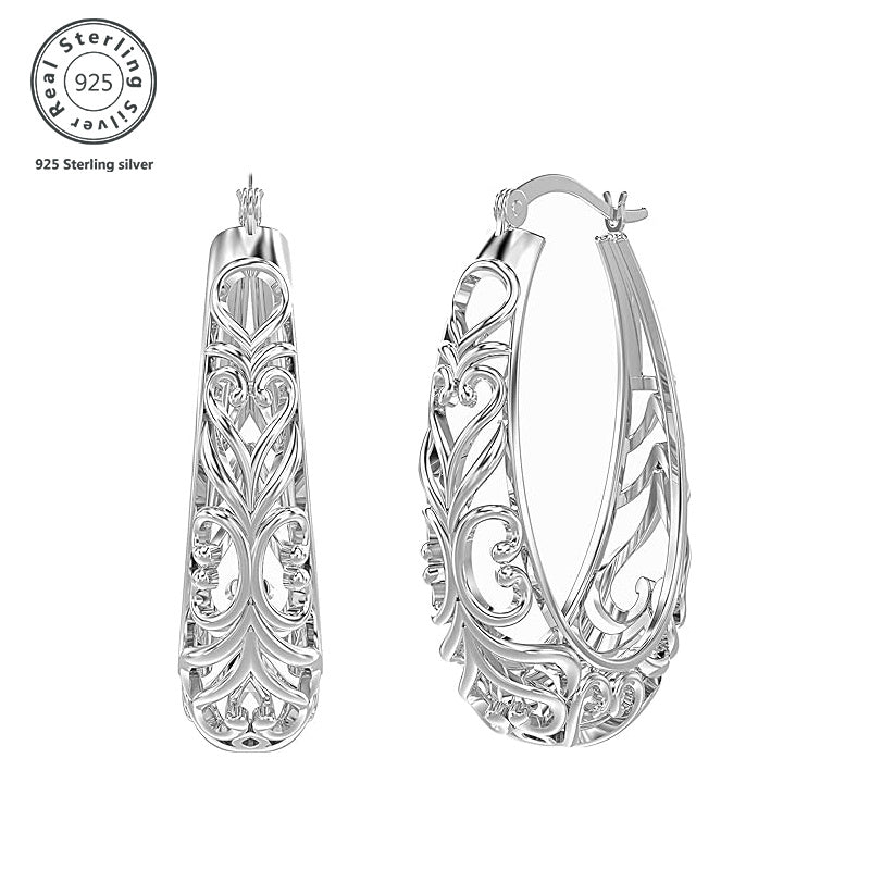 These hoop earrings are made of 925 silver with a vintage filigree mesh design. They are lightweight and hypo-allergenic, perfect for everyday wear or special occasions.