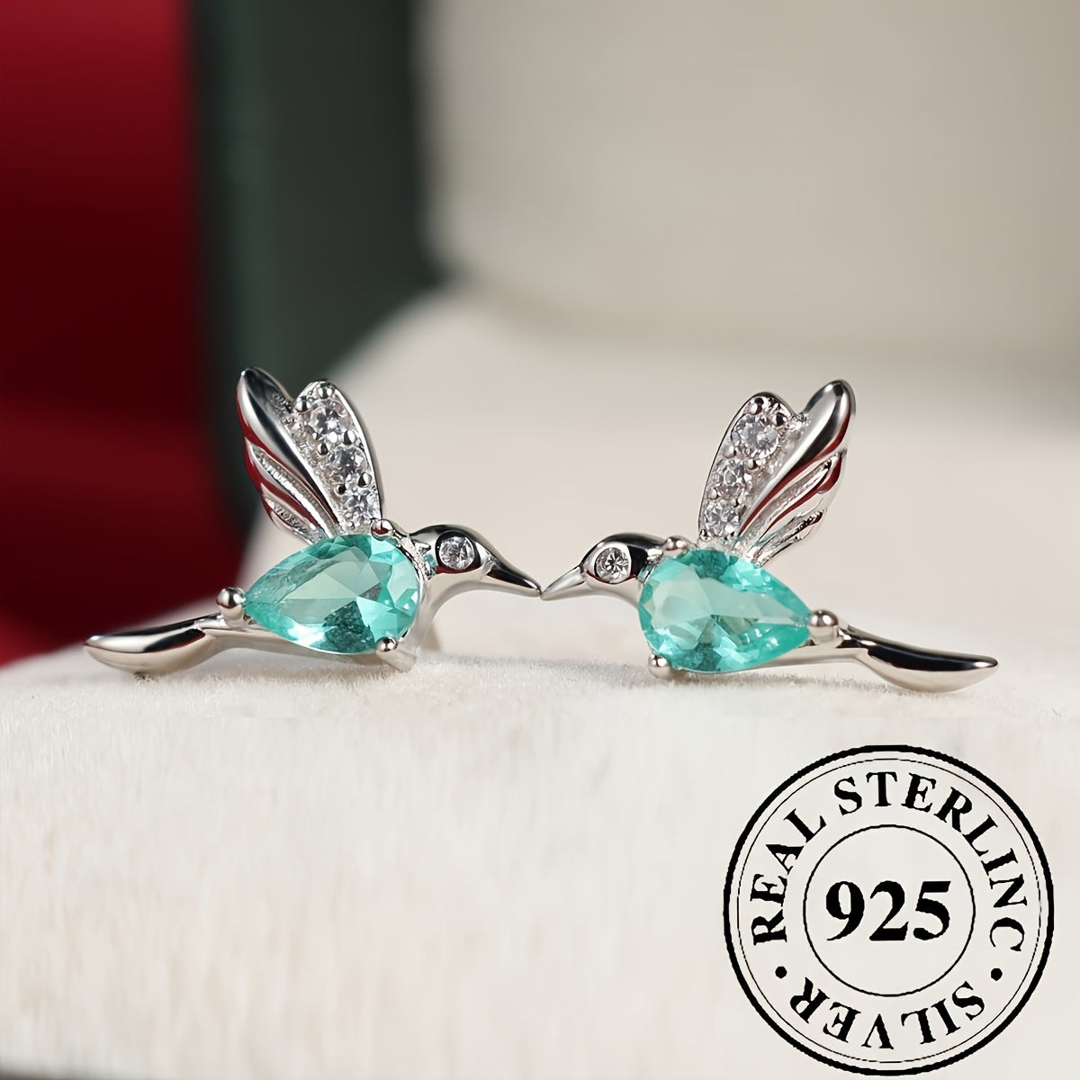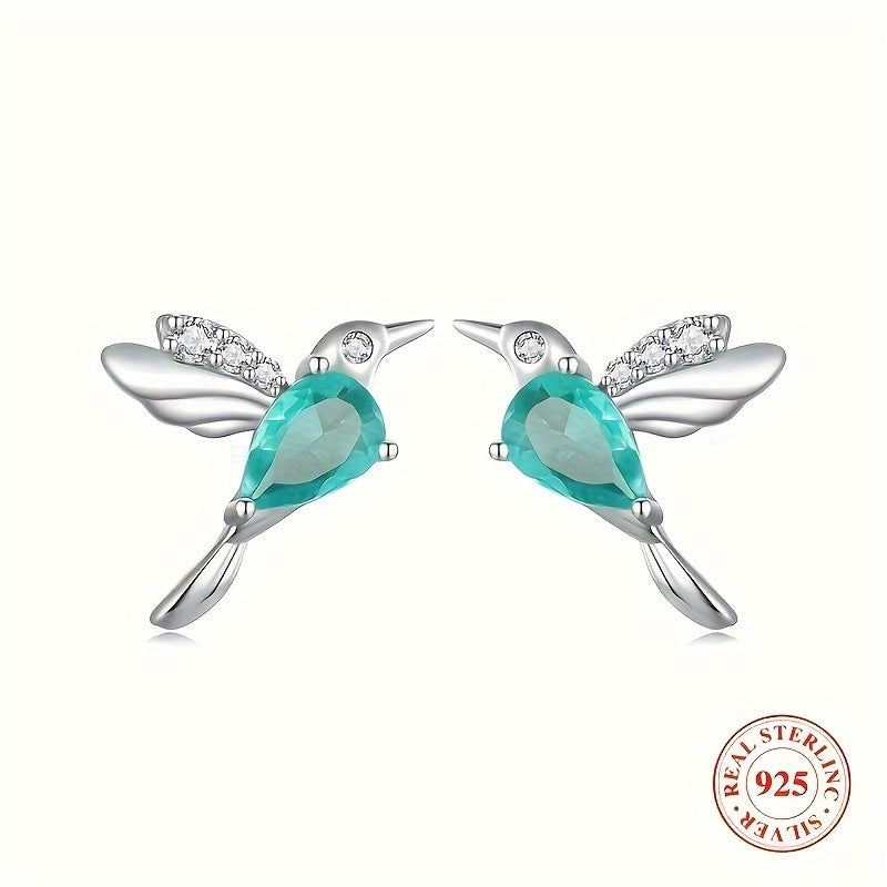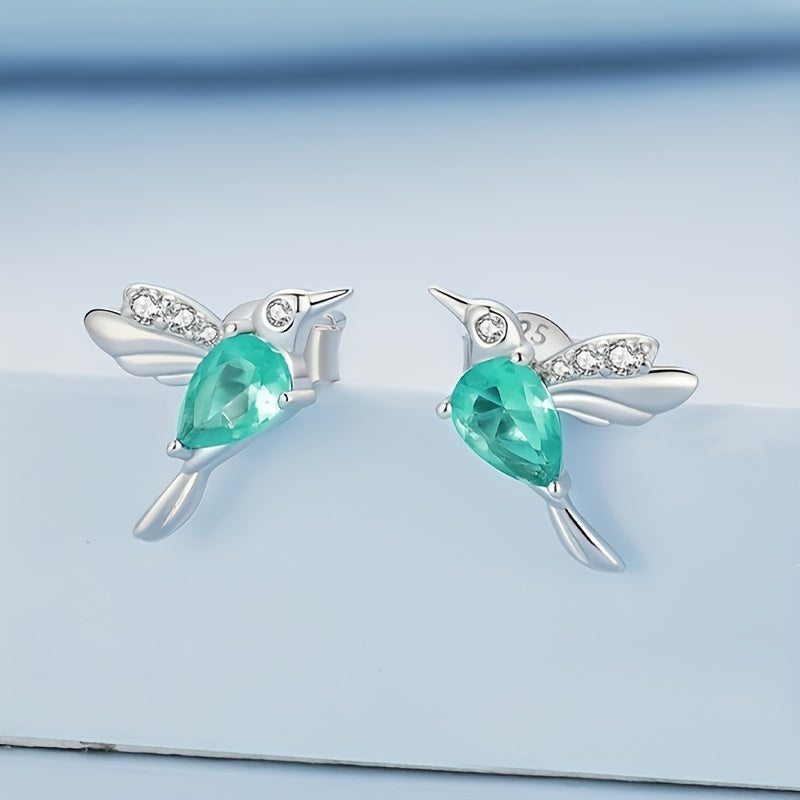 Delicate and charming, these sterling silver stud earrings feature a hummingbird design with green synthetic zirconia stones. Perfect for daily wear or special occasions, these earrings make a lovely gift for any woman.