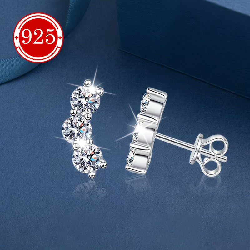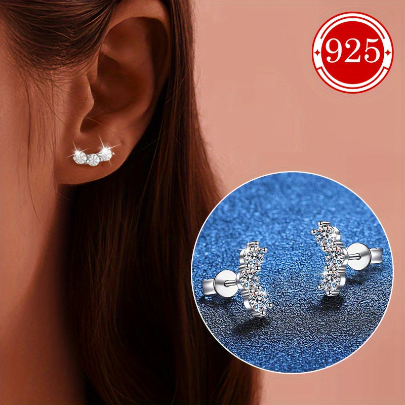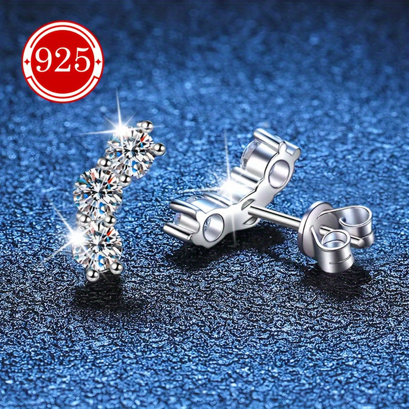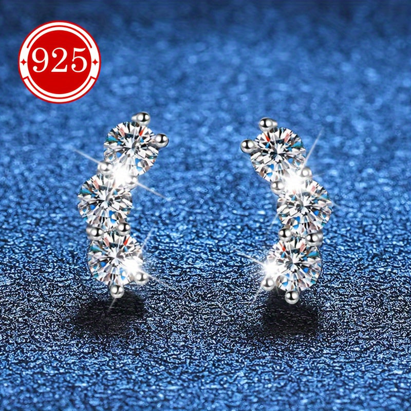 These elegant arc-shaped earrings feature moissanite stones set in 925 silver. They are perfect for gifting friends and suitable for daily wear, offering a romantic and versatile accessory option.