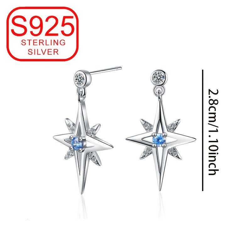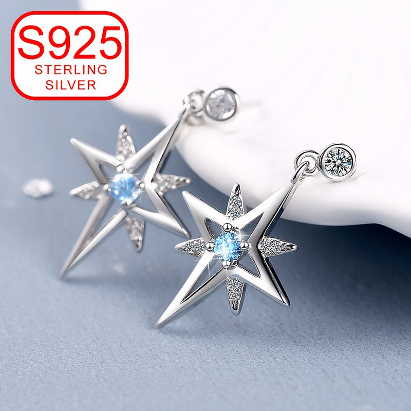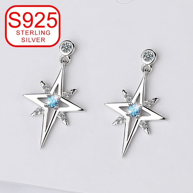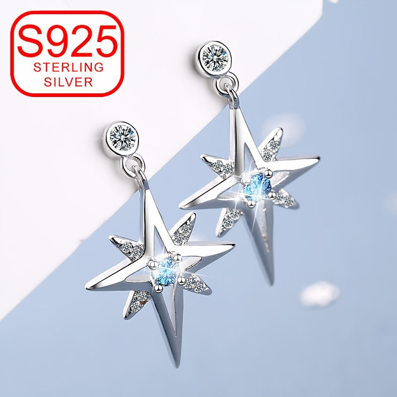 925 Silver Star Dangle Earrings CZ Sparkle Low Allergy Versatile Daily