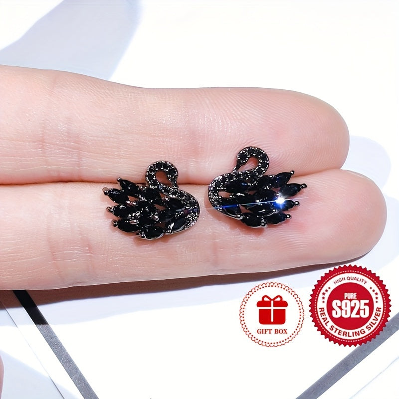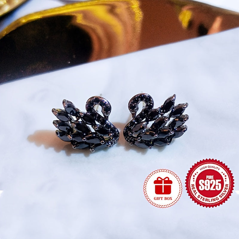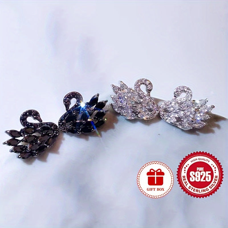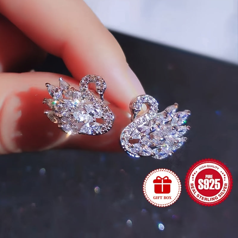 These hypoallergenic earrings are crafted from 925 silver and feature a beautiful swan design with clear CZ stones. They make an ideal gift for any occasion.