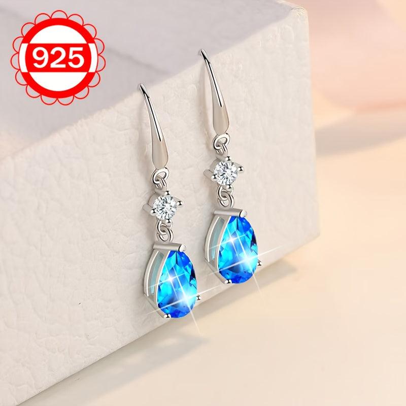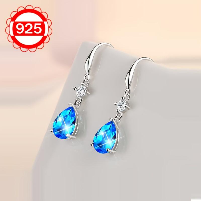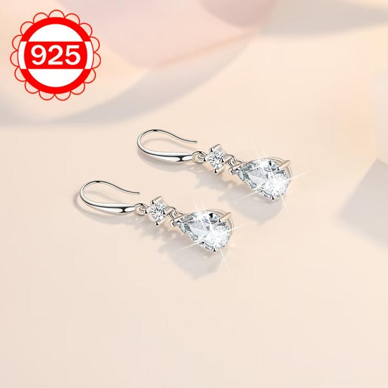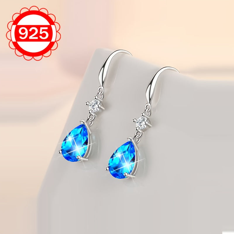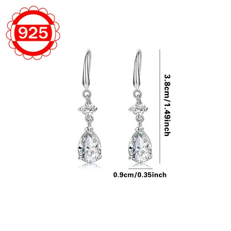 These sterling silver teardrop earrings feature synthetic zirconia, making them hypoallergenic. They are a fashionable high-end jewelry option for women.