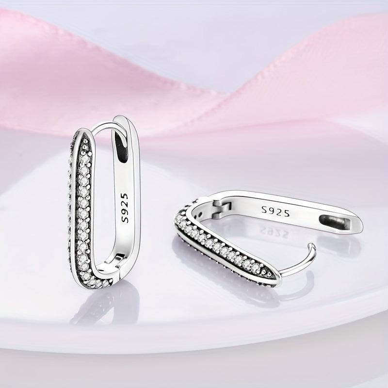 925 Silver U-Shaped Earrings with Zirconia Inlay