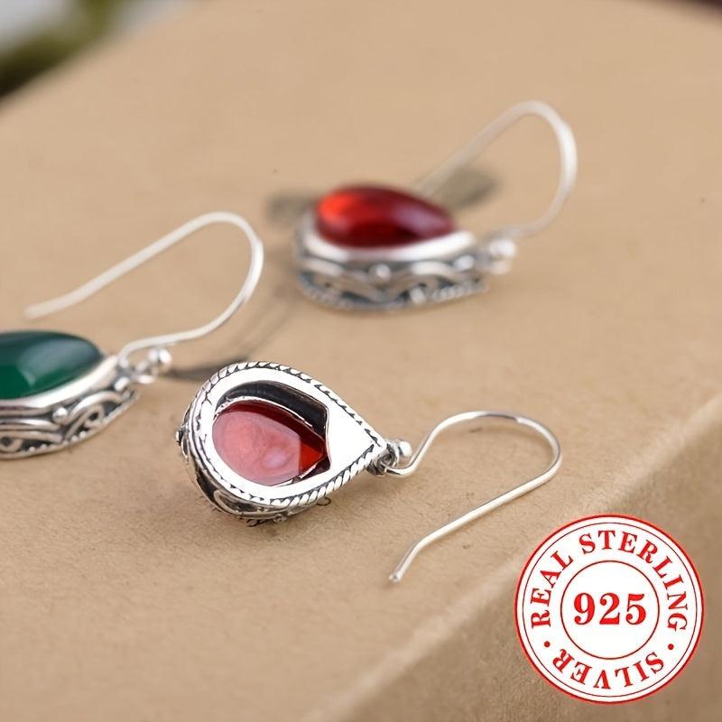Elegant 925 sterling silver earrings with synthetic green gemstones, perfect for daily wear or special occasions. These vintage-style drop earrings are ideal for adding a touch of sophistication to any outfit.