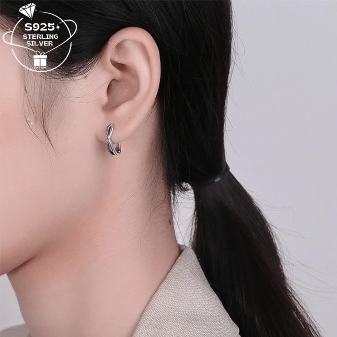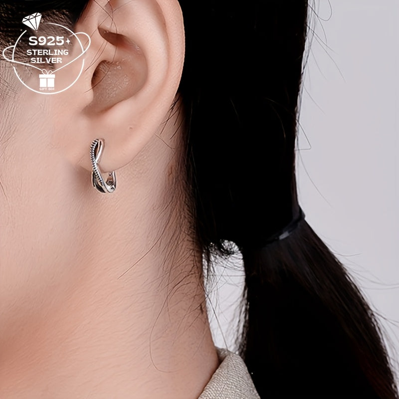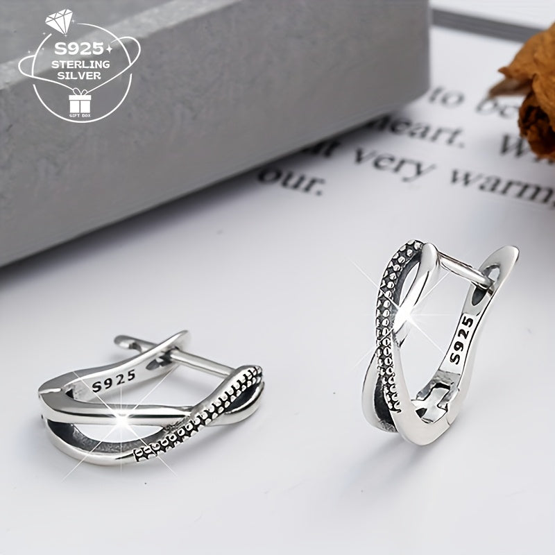 Adorn your ears with these elegant 925 silver earrings featuring a vintage 8-shaped twist design. Perfect accessory for a holiday gift. Total weight approximately 2.4g.