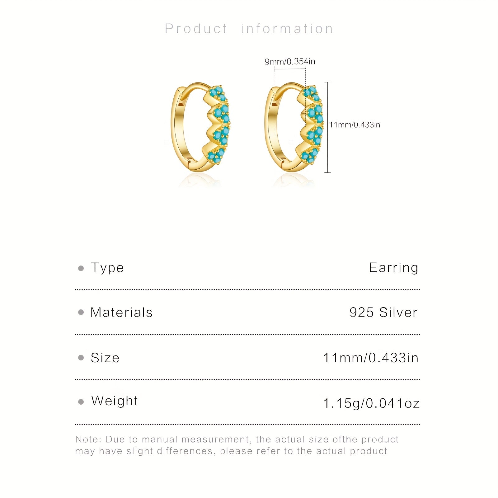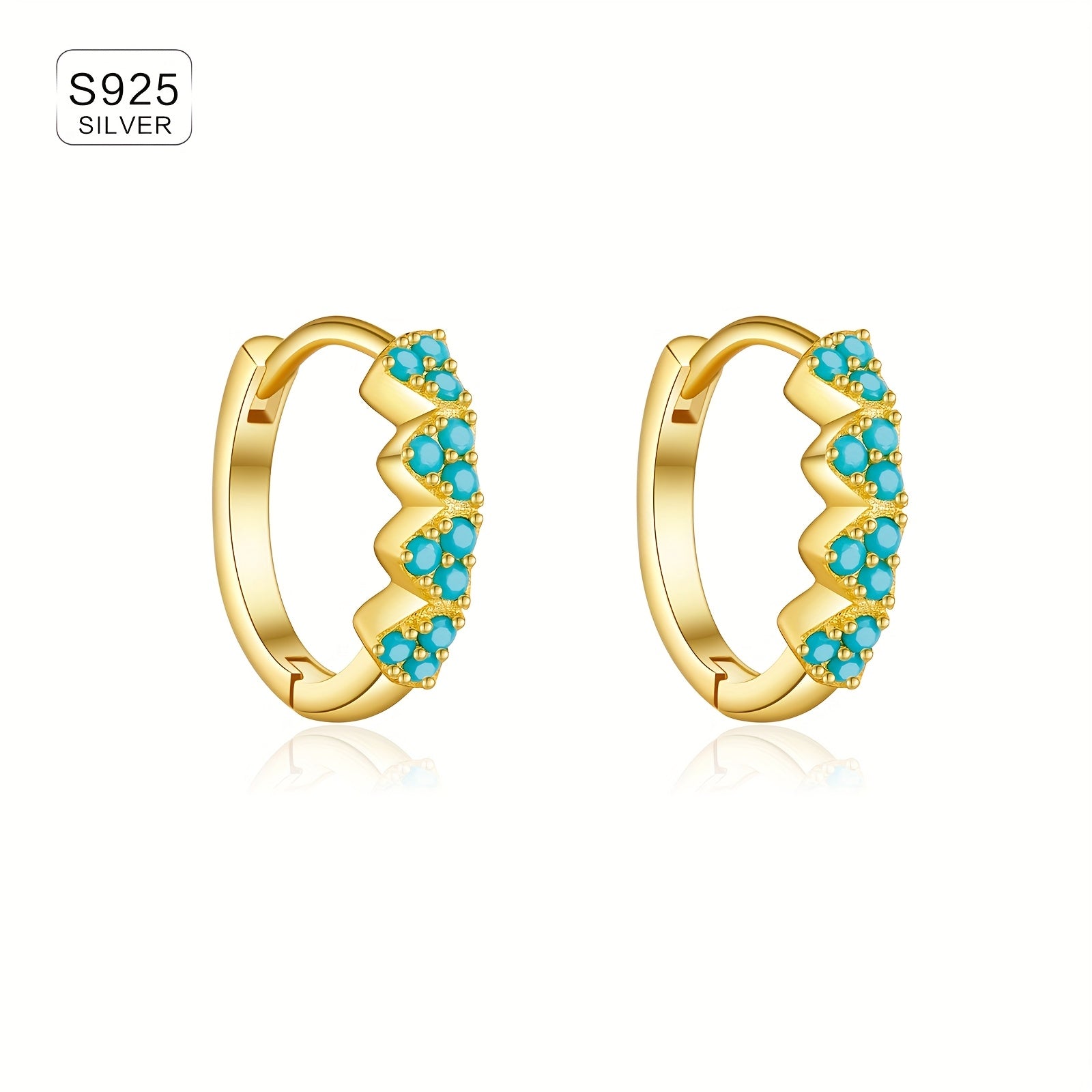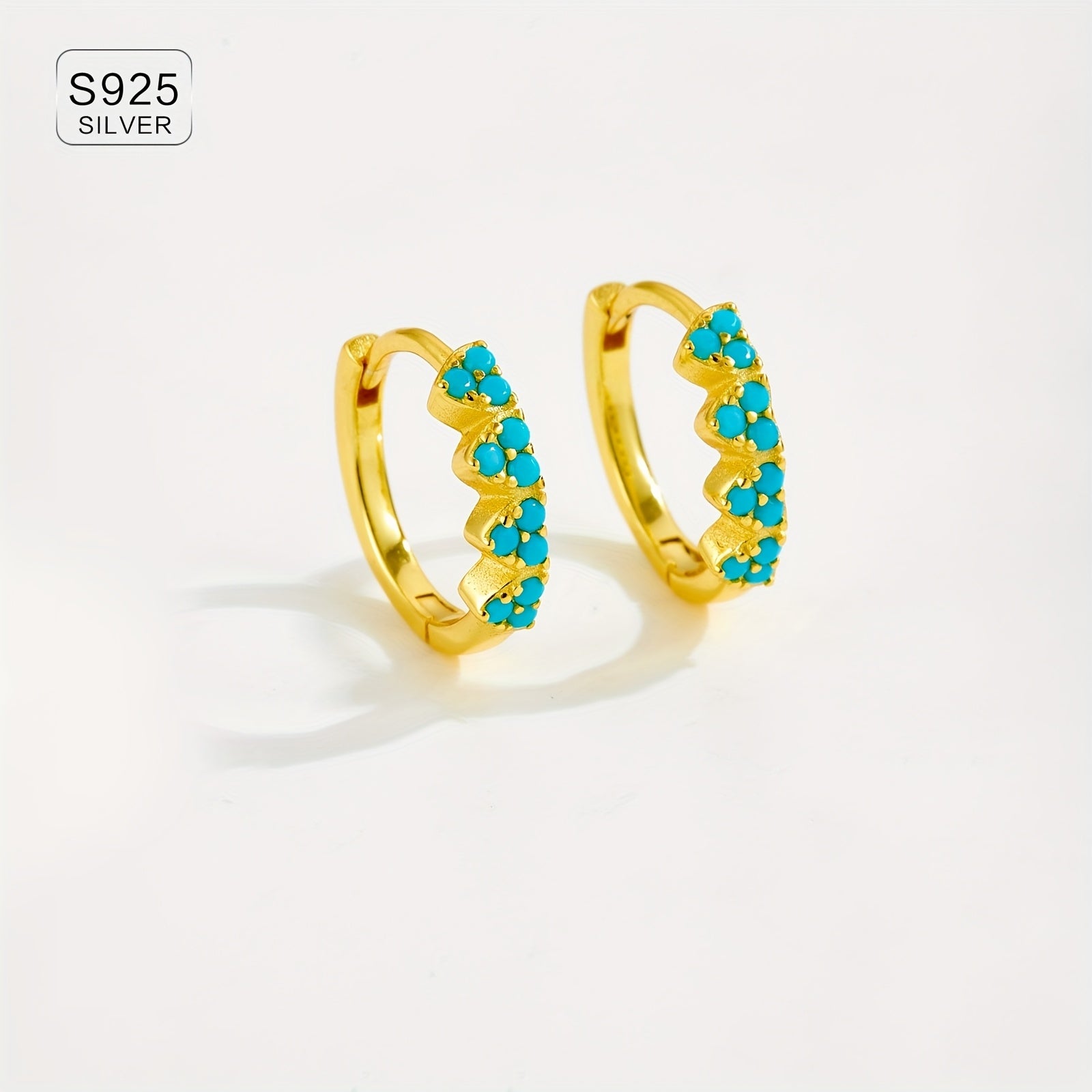 These elegant hoop earrings are crafted from 925 silver and plated with 18k gold. They feature a turquoise stone for a touch of color, perfect for daily wear.