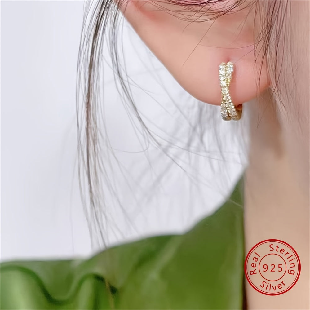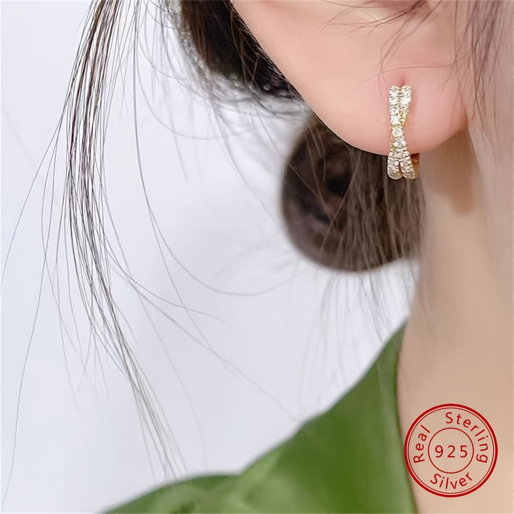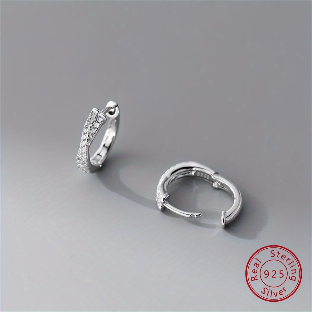 Elegant and versatile pair of earrings made of 925 sterling silver with double row of zirconia. Perfect for daily commuting or special occasions.