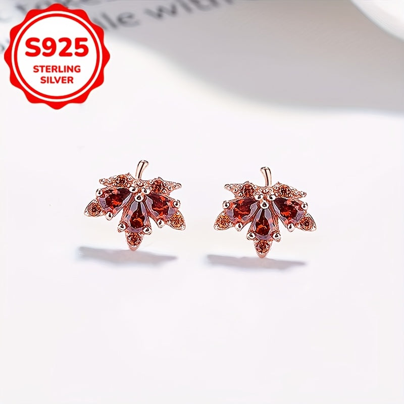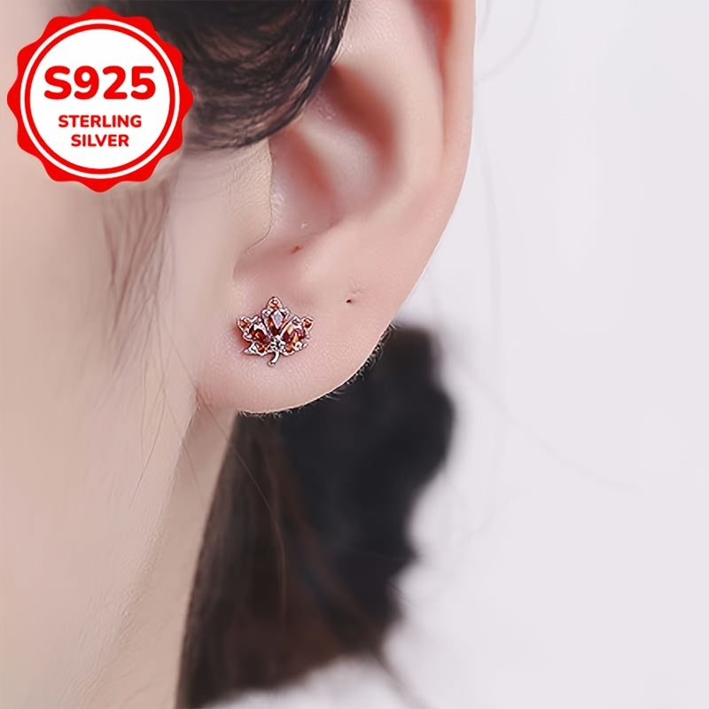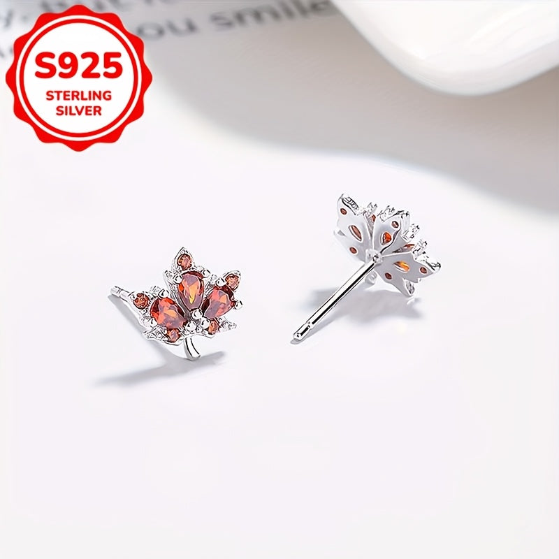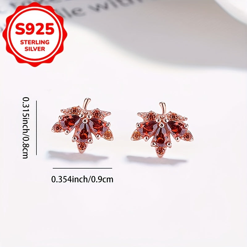 Add a touch of elegance to your look with these maple leaf stud earrings featuring red rhinestones. Made of high-quality 925 sterling silver, these earrings are perfect for daily wear.