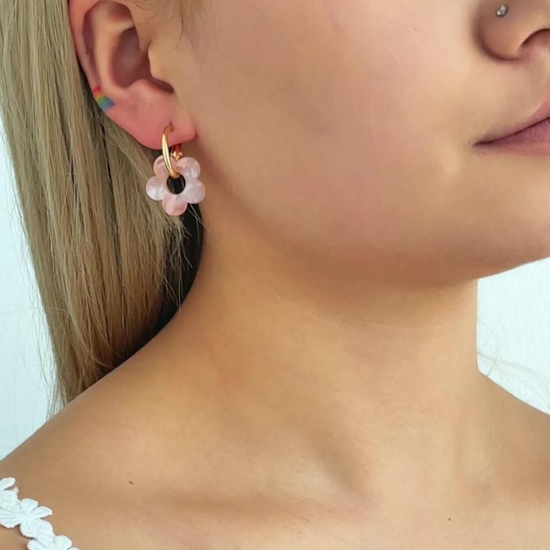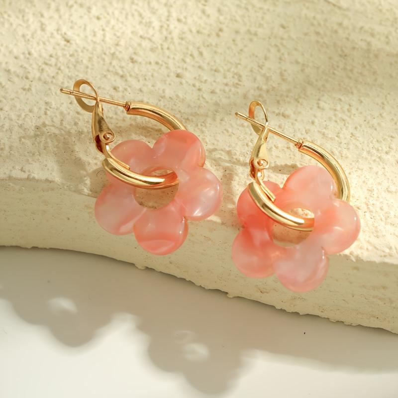 Add a touch of charm to your daily look with these fashionable pink flower earrings. These versatile accessories are perfect for any occasion.