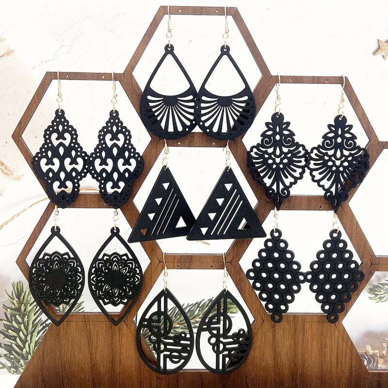 Embrace holiday style with these creative and versatile wooden earrings. The geometric design adds an exaggerated touch to your daily look.