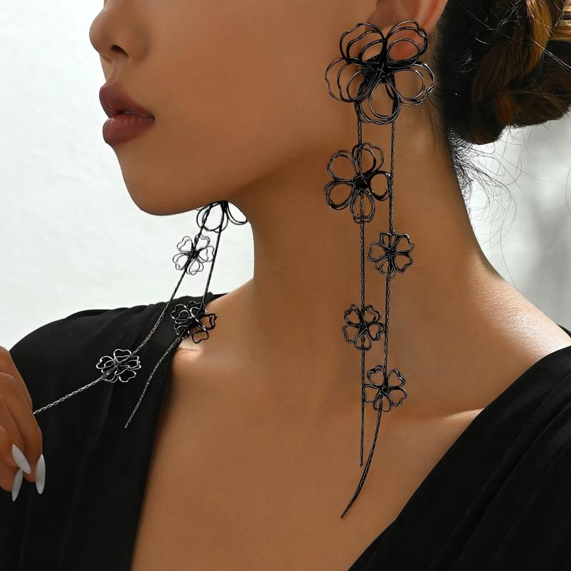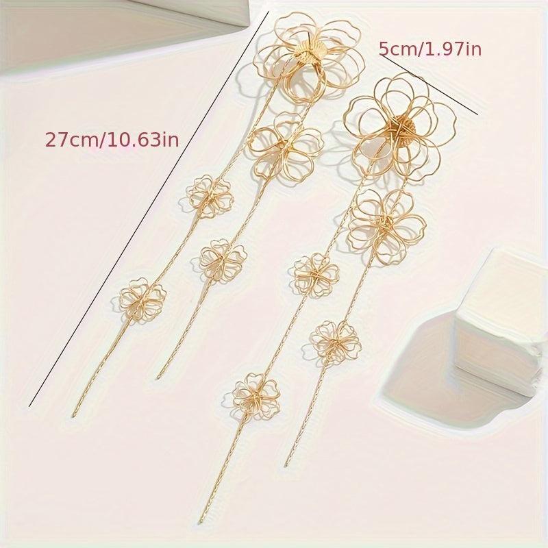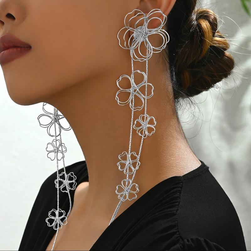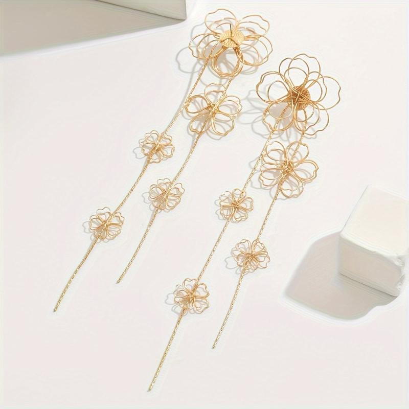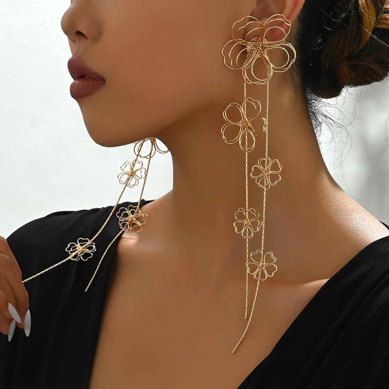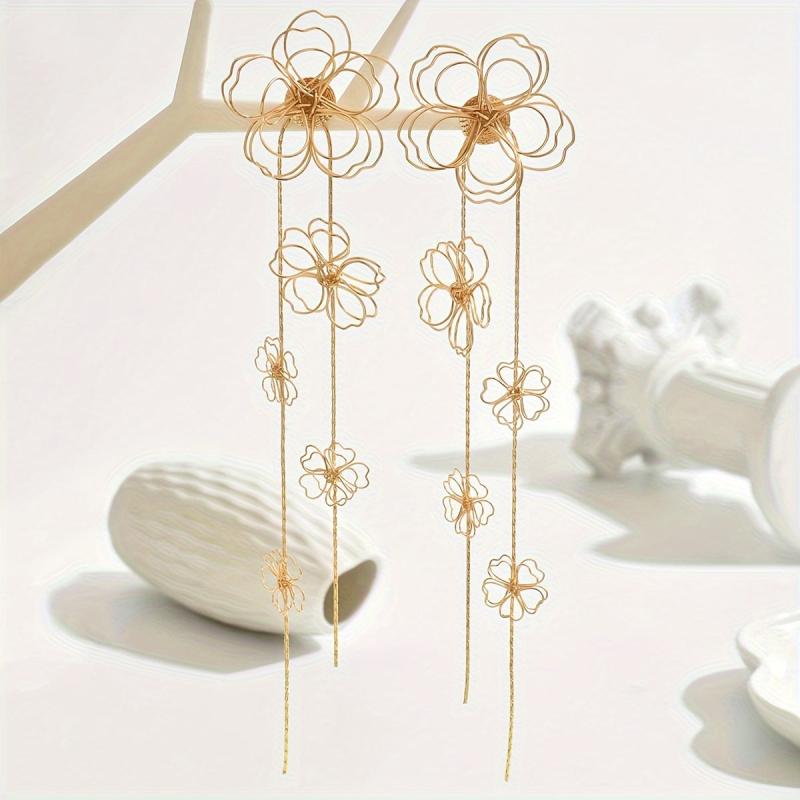 Add a touch of vintage charm to your outfit with these bohemian floral tassel drop earrings. Perfect for parties or everyday wear, these earrings feature a metal hollow flower design that adds a unique flair to your look.