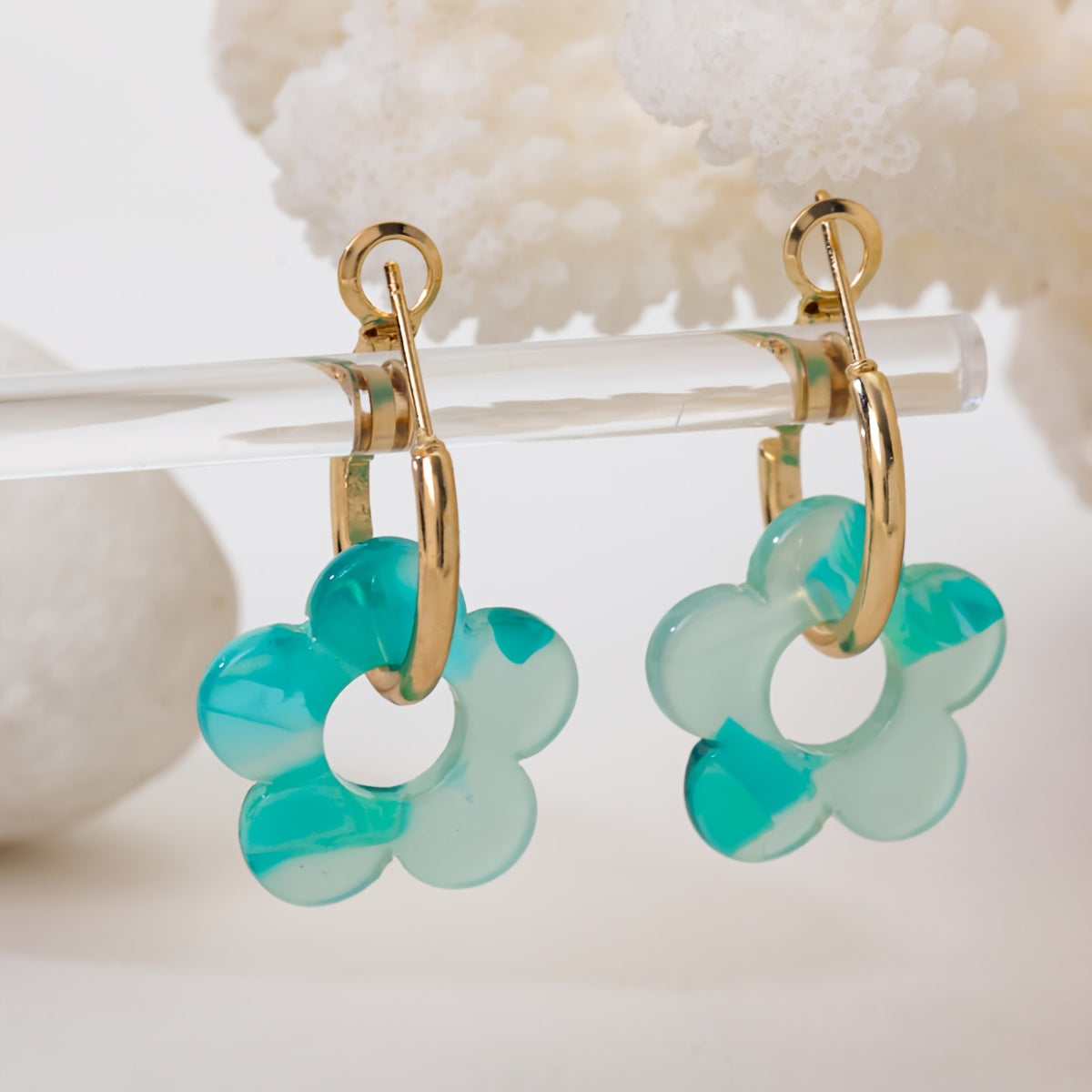 These stylish acrylic flower dangle earrings are perfect for adding a touch of bohemian charm to your casual attire. Lightweight and vibrant, they make a fun accessory for any outfit or a great gift for a fashion-forward friend.