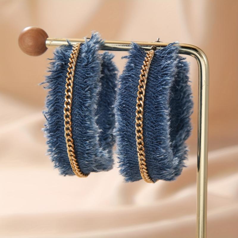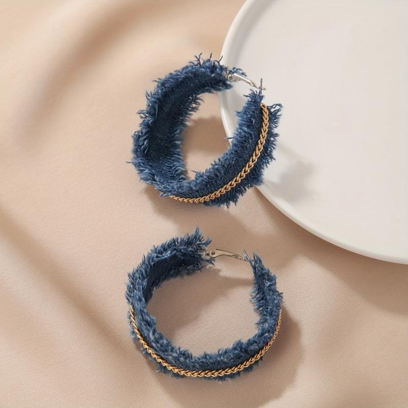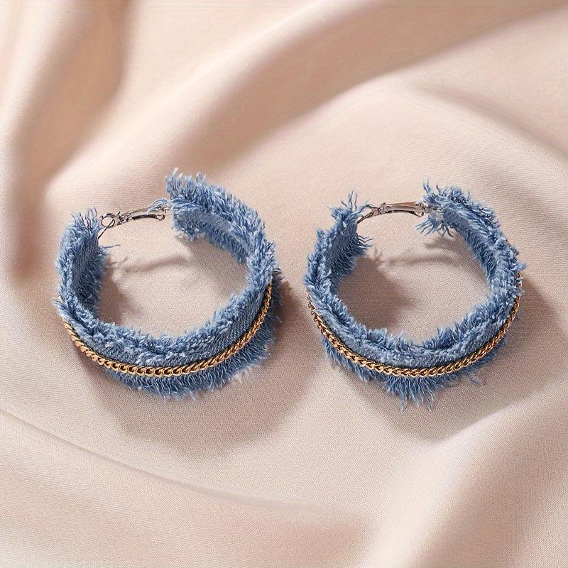 Add a touch of boho style with these denim tassel earrings that are perfect for daily wear or parties. Great for Christmas and all seasons.