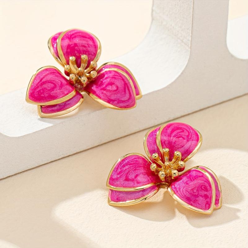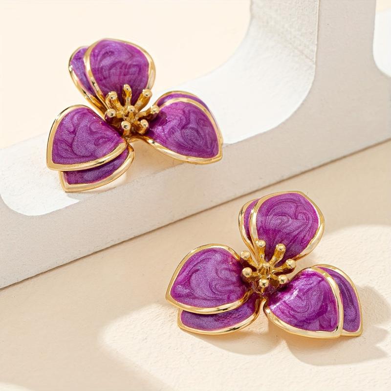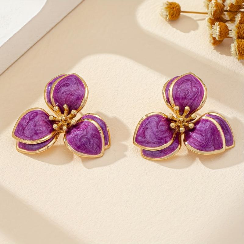 Chic and versatile, these boho floral enamel stud earrings feature an iron post design, perfect for daily wear or parties. Add a touch of vacation style to your outfit with these trendy earrings.