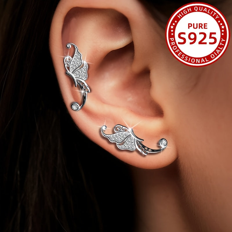 Enhance your style with these beautiful full ear earrings featuring butterfly micro inlay design. Made from 925 silver and synthetic zirconia, these earrings are perfect for adding a touch of elegance to your look.